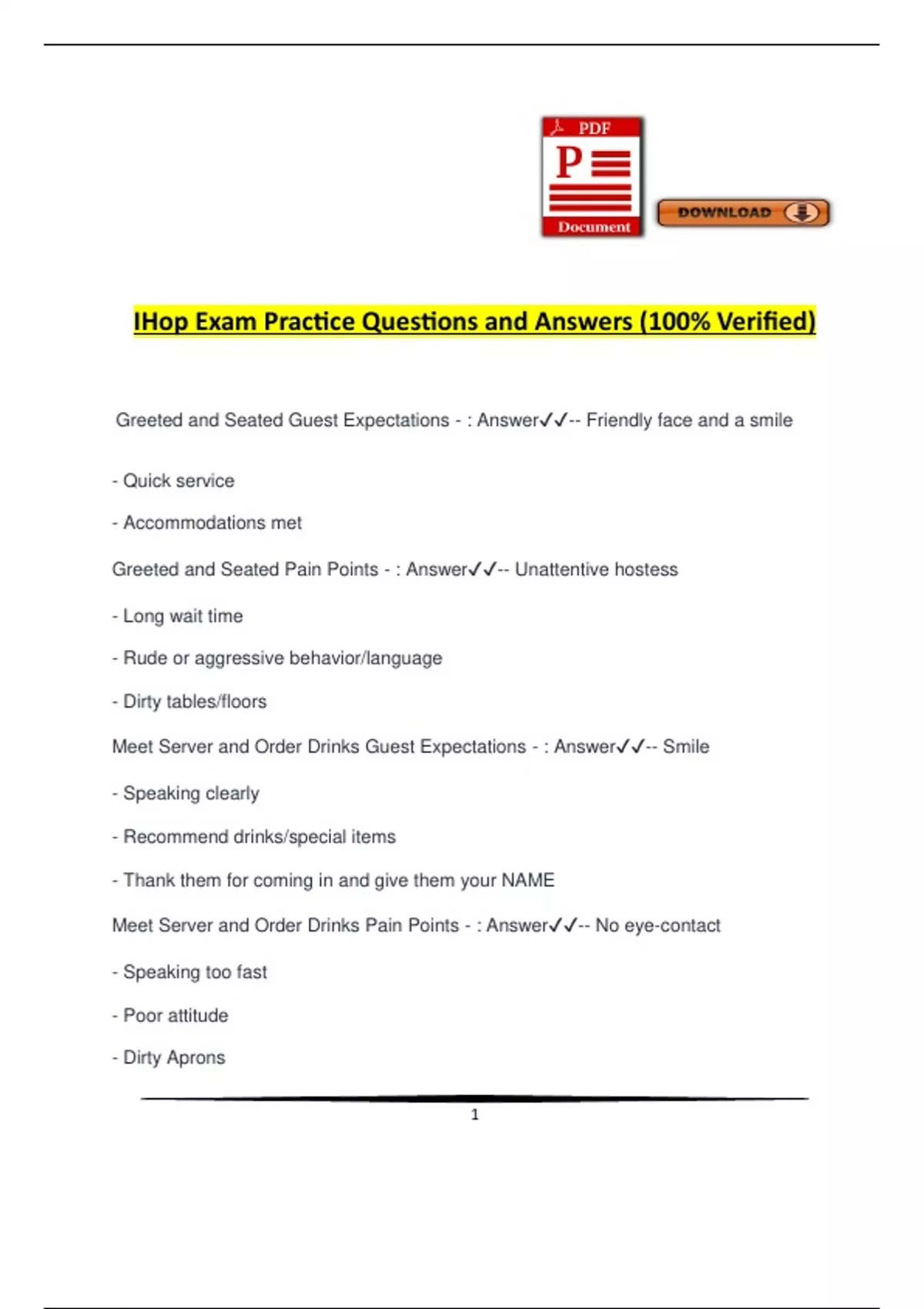 IHop Exam Practice Questions and Answers (100% Verified