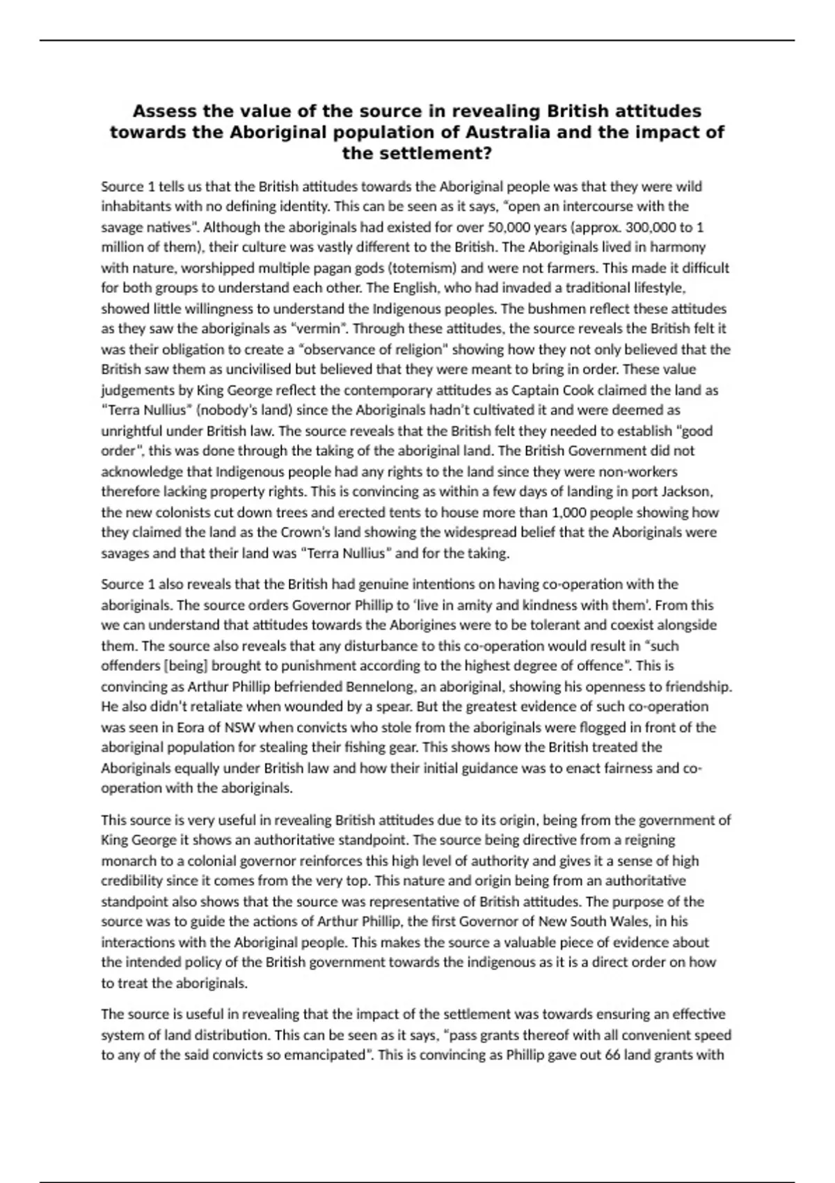as they saw the aboriginals as “vermin”. Through these attitudes, the source reveals the British felt it