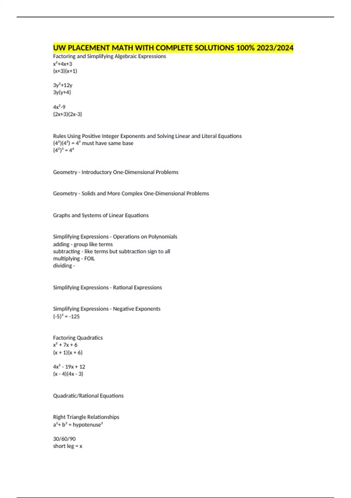 Rules Using Positive Integer Exponents and Solving Linear and Literal Equations