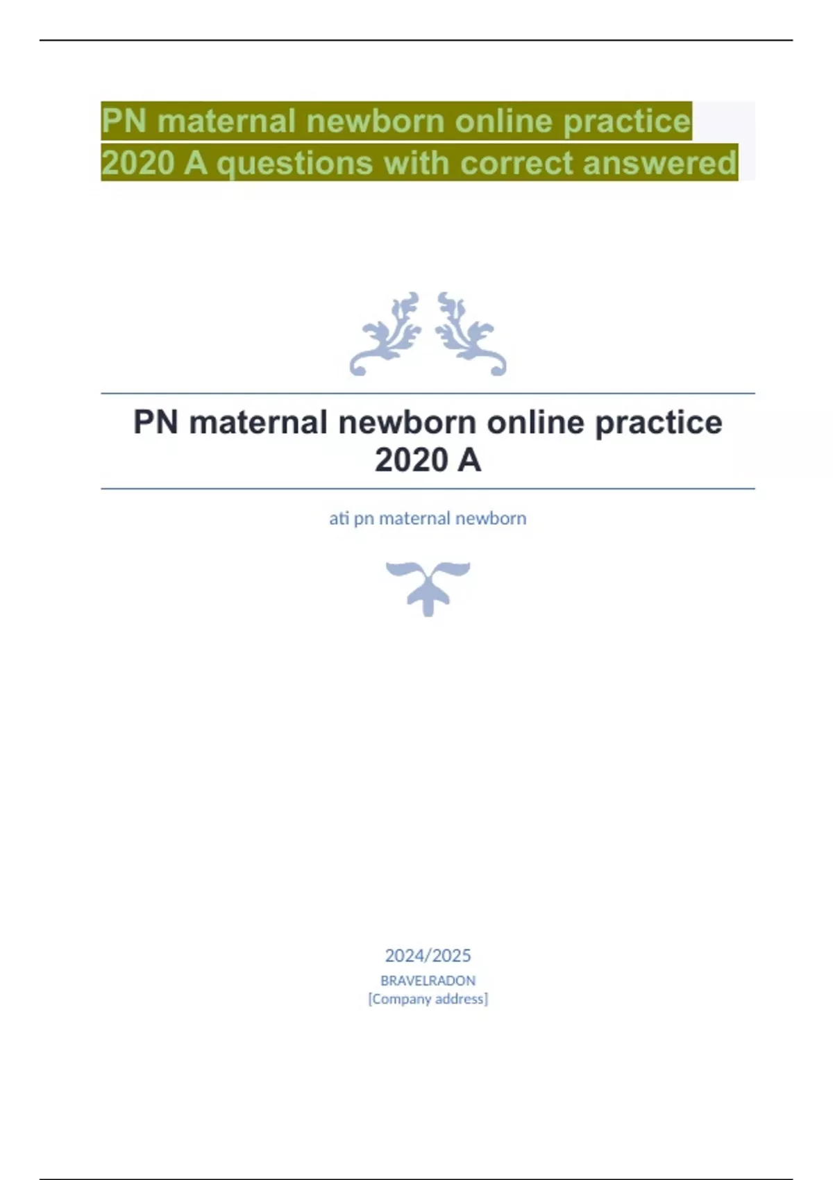 PN maternal newborn online practice 2020 A questions with correct answered