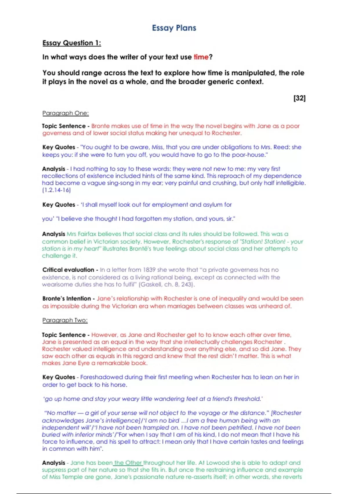 Jane Eyre Essay Plans