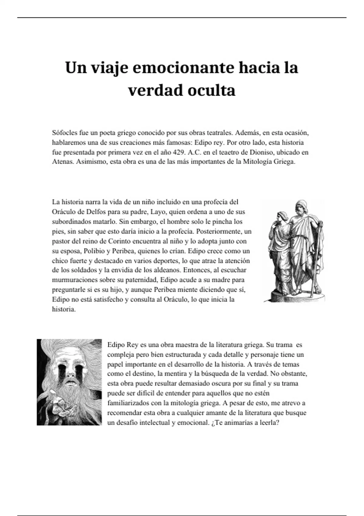 hablaremos una de sus creaciones más famosas: Edipo rey. Por otro lado, esta historia