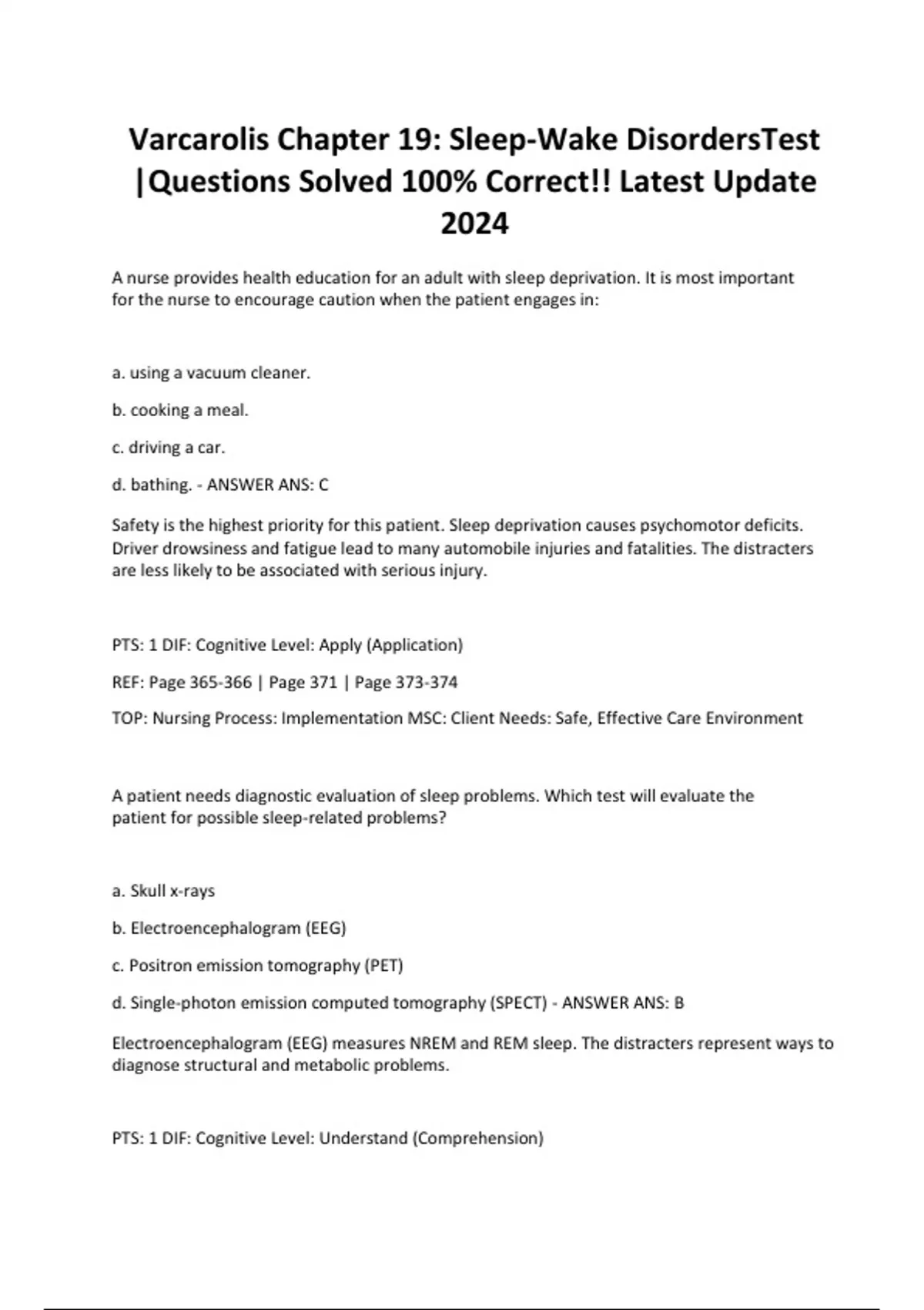 Varcarolis Chapter 19: Sleep-Wake DisordersTest |Questions Solved 100% Correct!! Latest Update 2024