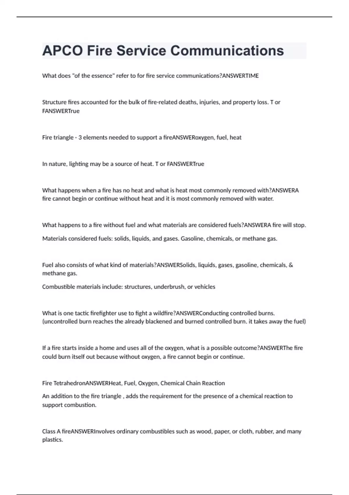 APCO Fire Service Communications Exam Questions And Answers 2024(GRADED A+)