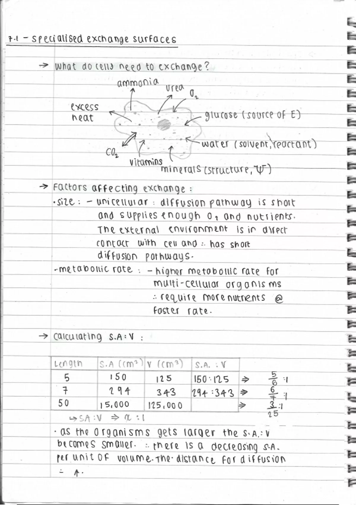 OCR A Biology H420 - 3.1.1 - Exchange Surfaces (Chapter 7) Short Summary Notes