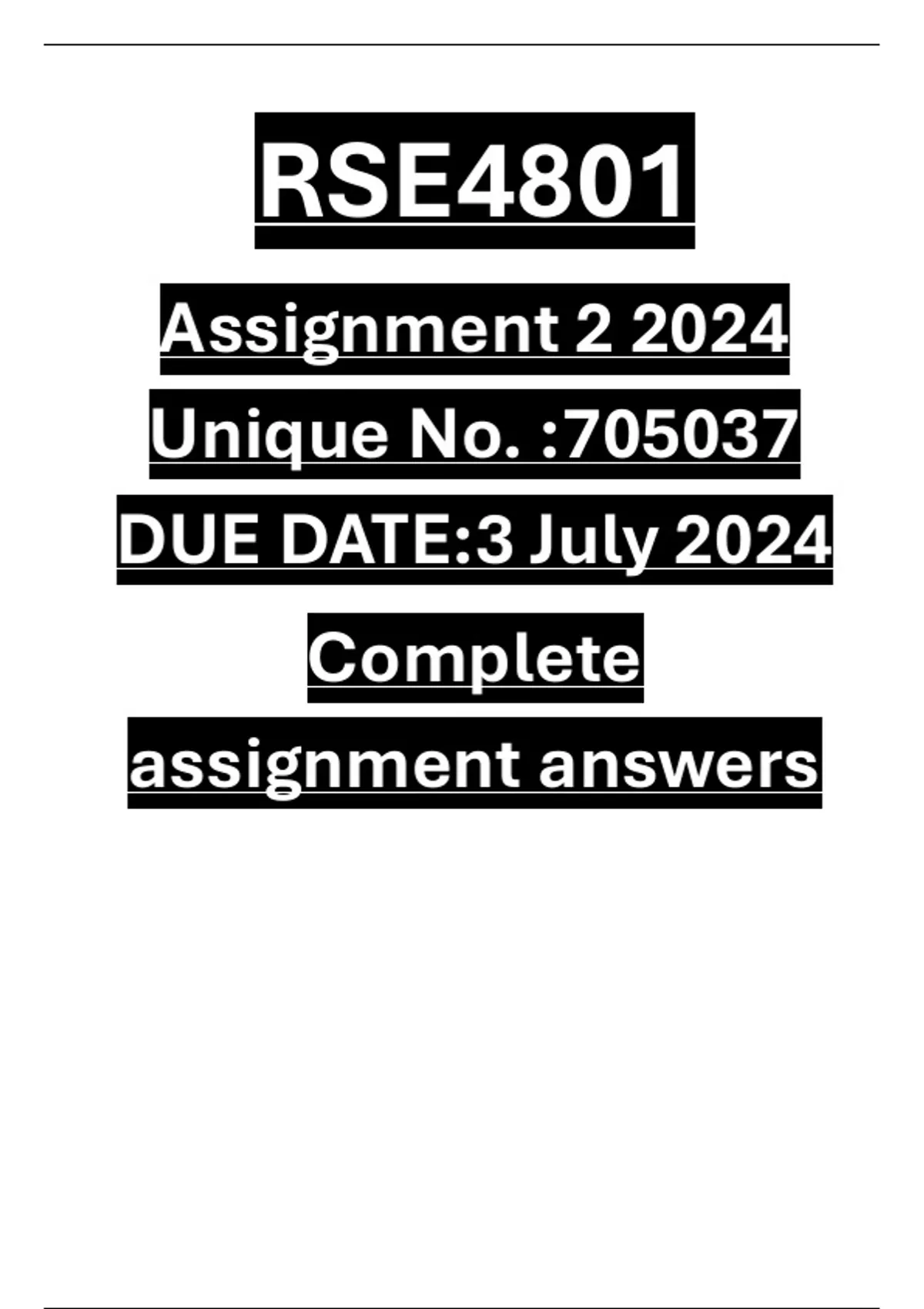 RSE4801 ASSIGNMENT 2 ANSWERS DUE: 3 JULY 2024