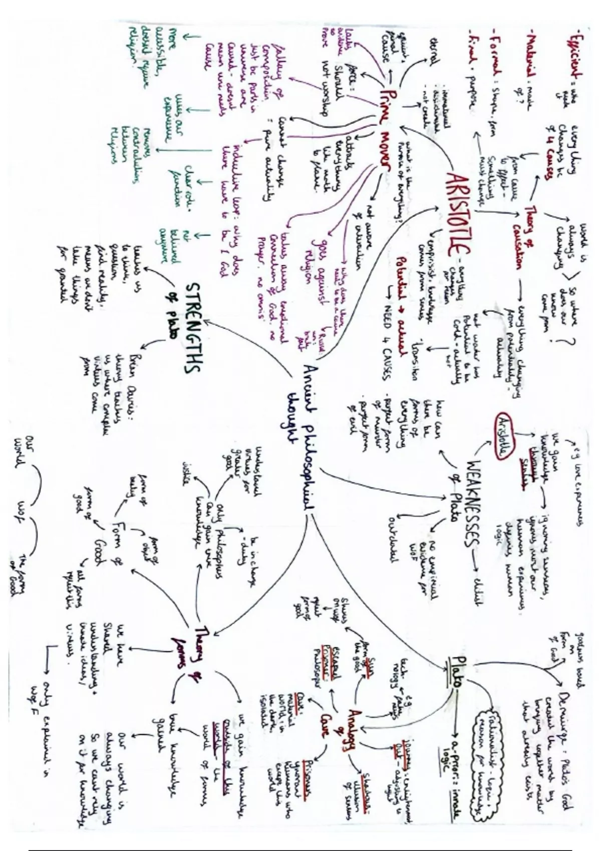 Ancient Philosophical Thought - Summary MindMap of Aristotle and the opposition Plato. Definitions and key terminology used.