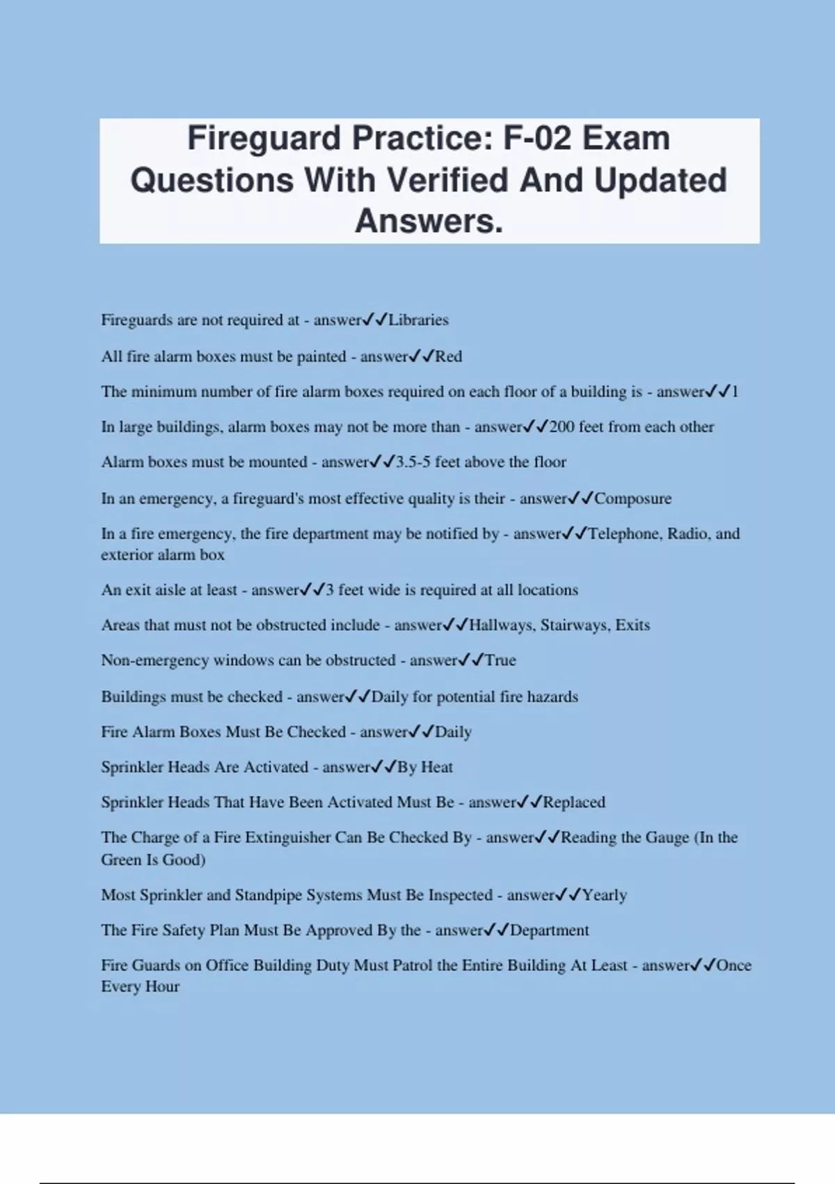 Fireguard Practice: F-02 Exam Questions With Verified And Updated Answers.
