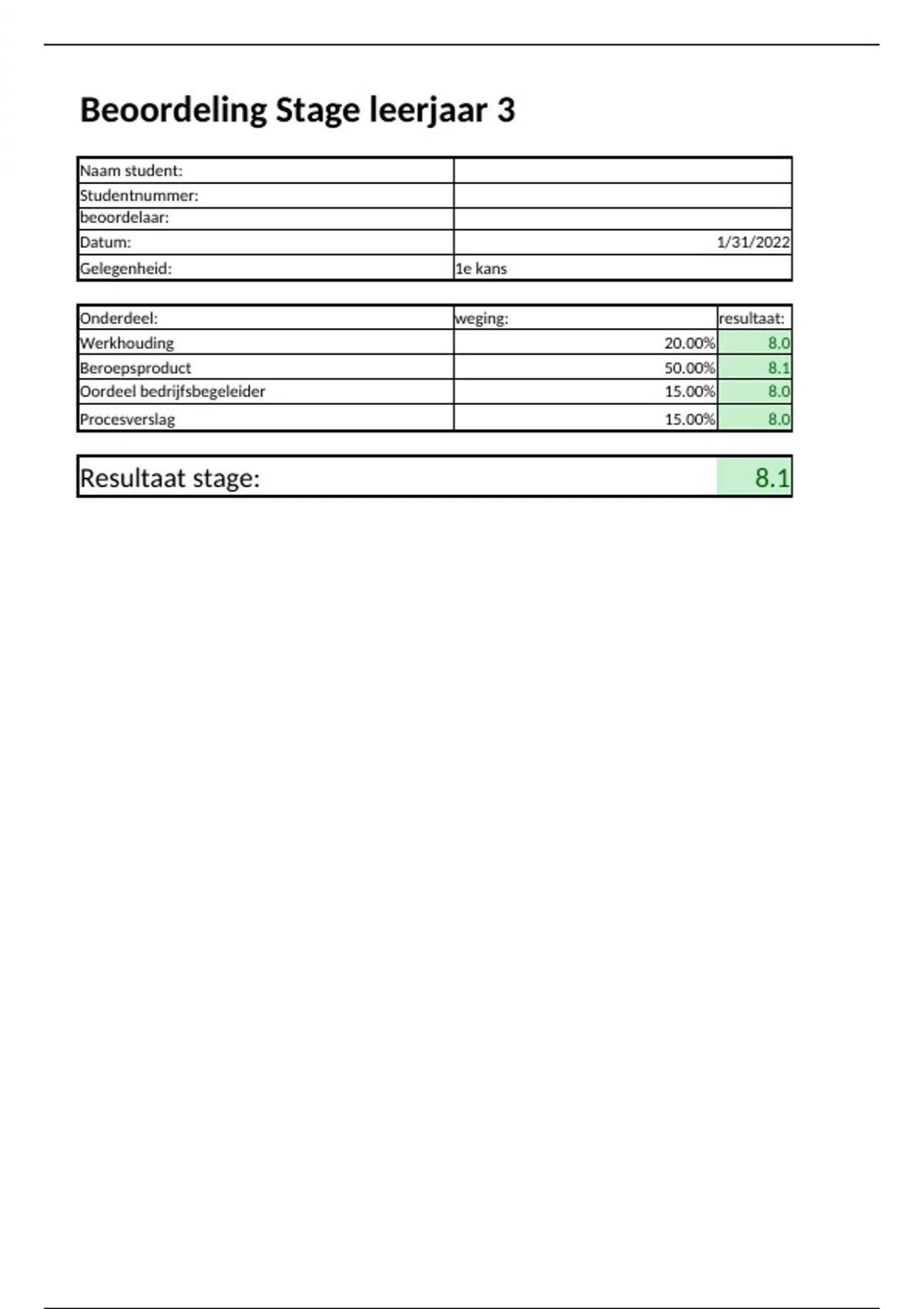 Oordeel bedrijfsbegeleider 15.00% 8.0