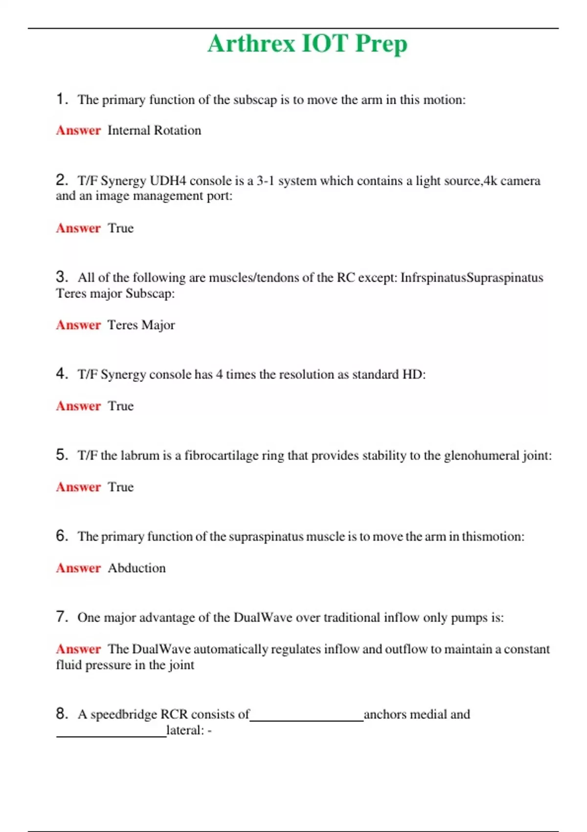 Arthrex IOT Prep (Latest 2024) Questions With Complete Grade A+ Answers