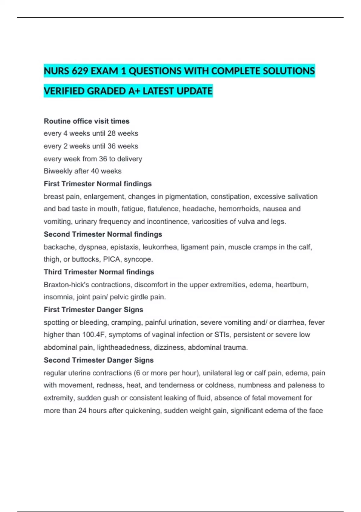 regular uterine contractions (6 or more per hour), unilateral leg or calf pain, edema, pain