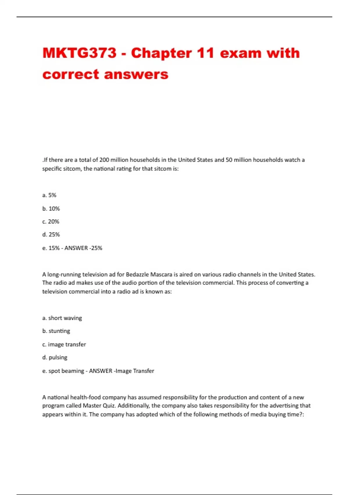 mktg373 chapter 11 exam with correct answers