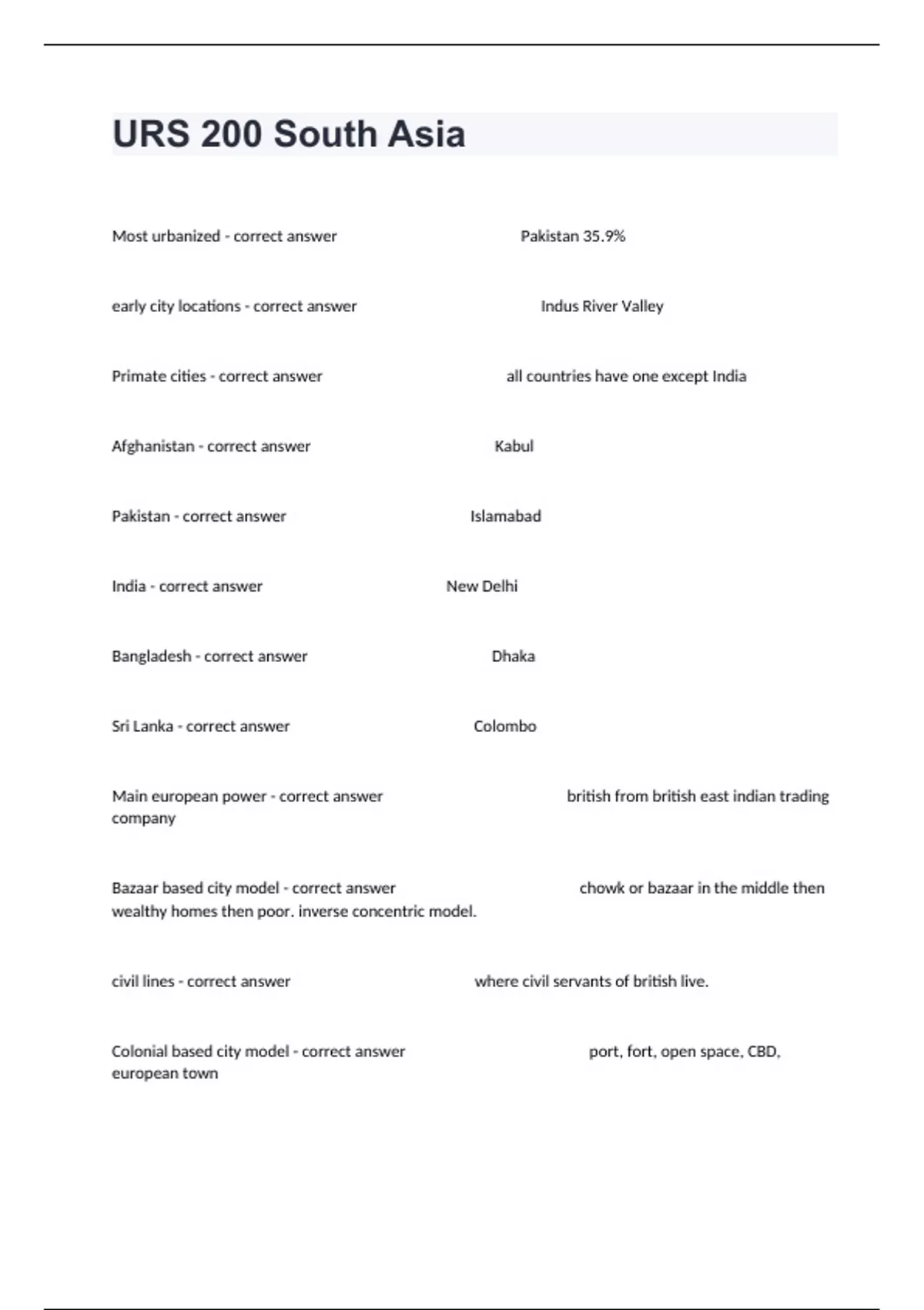 URS 200 South Asia Study Guide With Complete Questions.