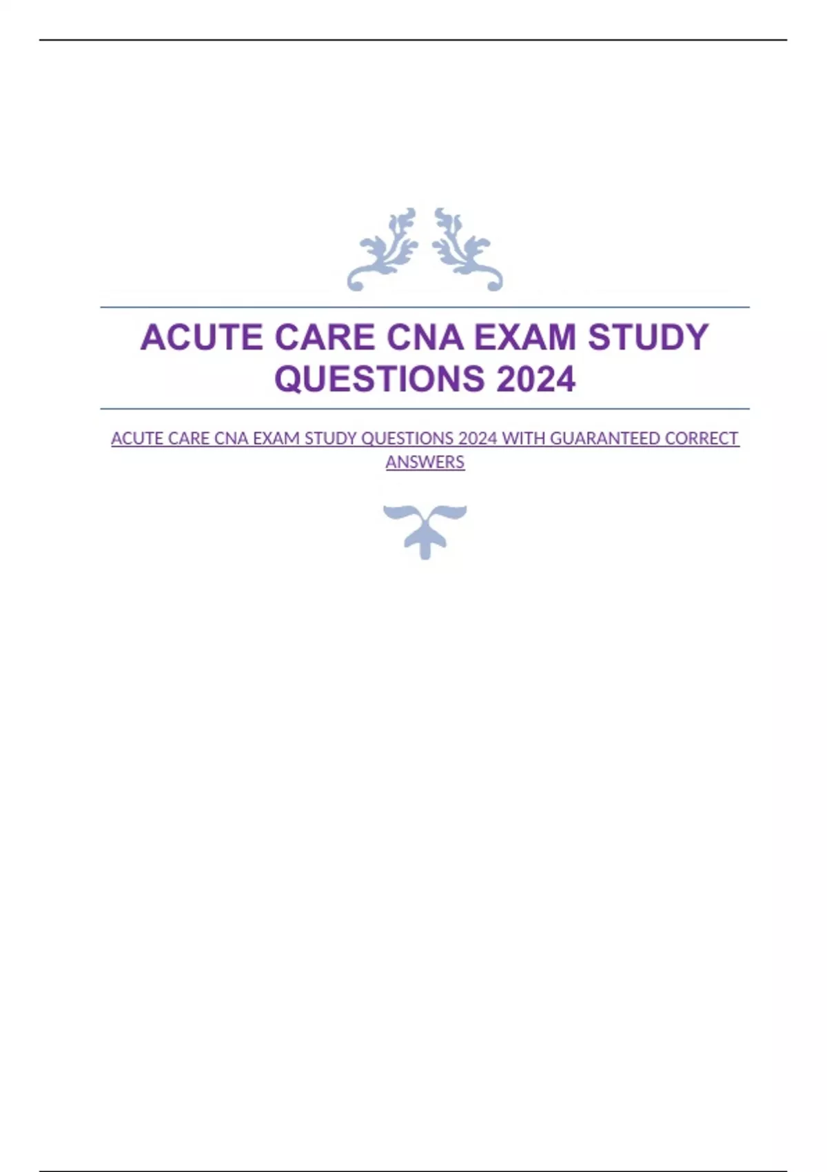 ACUTE CARE CNA EXAM STUDY QUESTIONS 2024 WITH GUARANTEED CORRECT ANSWERS