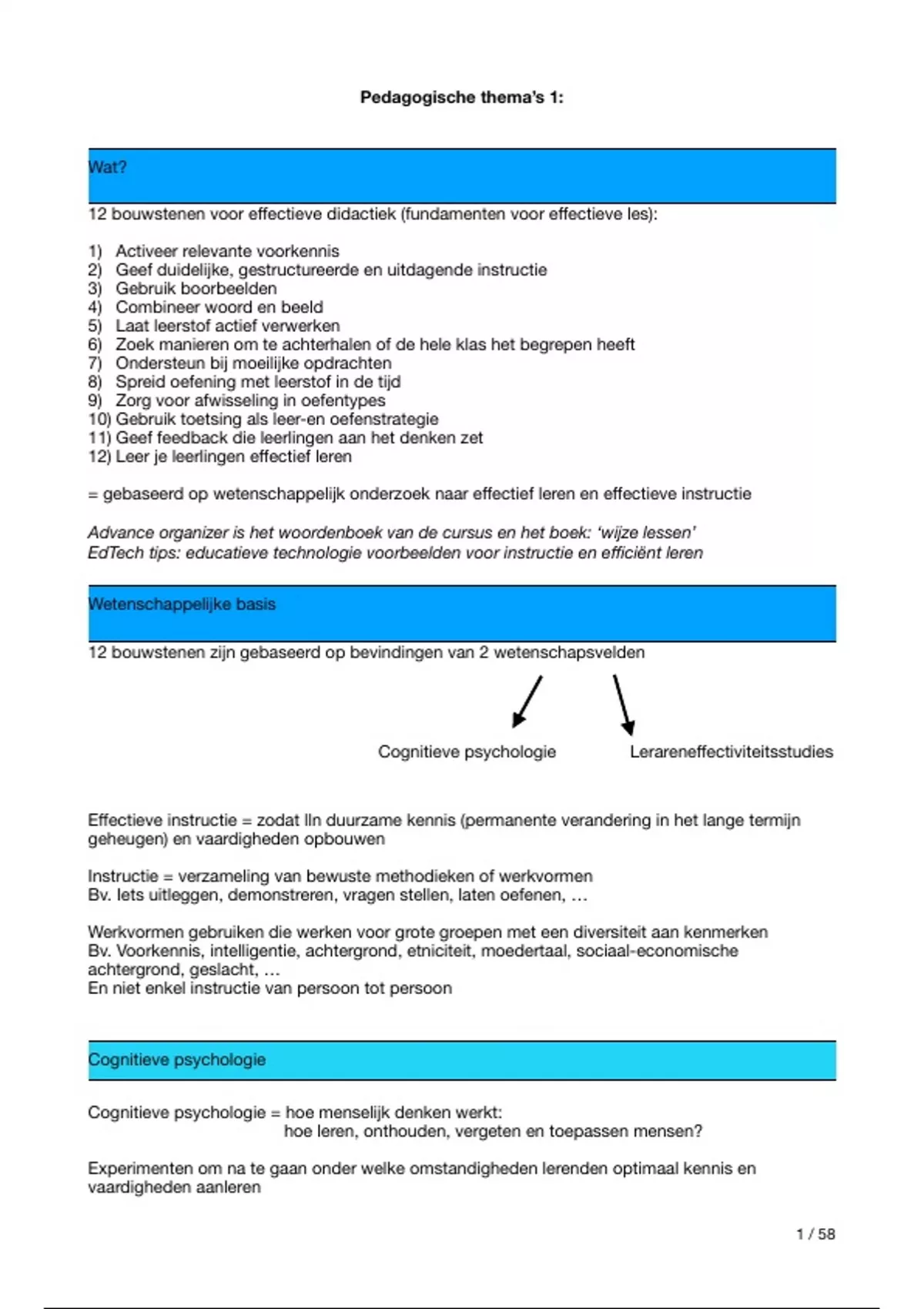 Cognitieve psychologie Lerarene ectiviteitsstudies