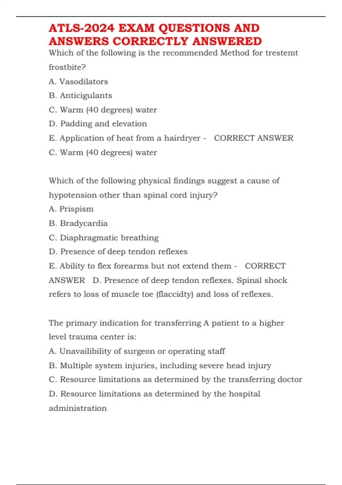 ANSWER D. Presence of deep tendon reflexes. Spinal shock
