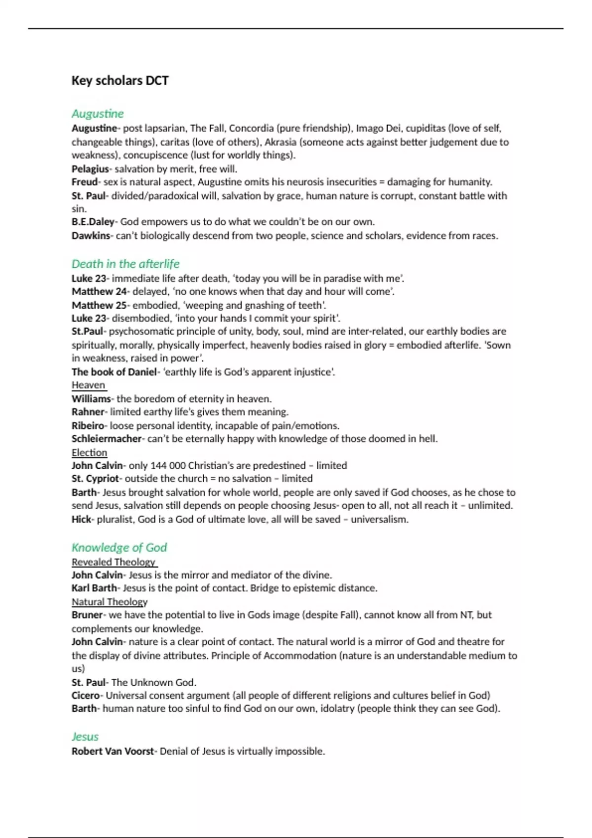 Specification Scholars for Developments in Christian Thought - Extra scholars also available to strengthen essays