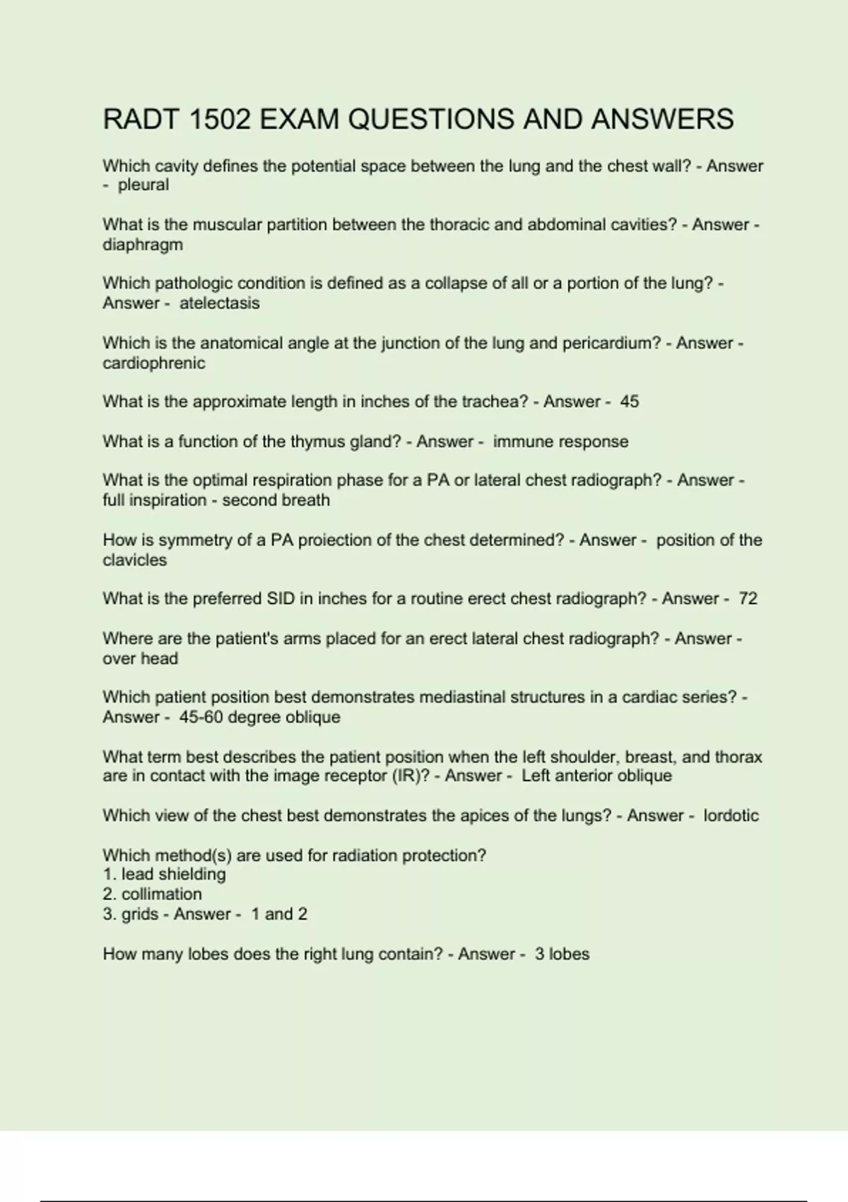 RADT 1502 EXAM QUESTIONS AND ANSWERS