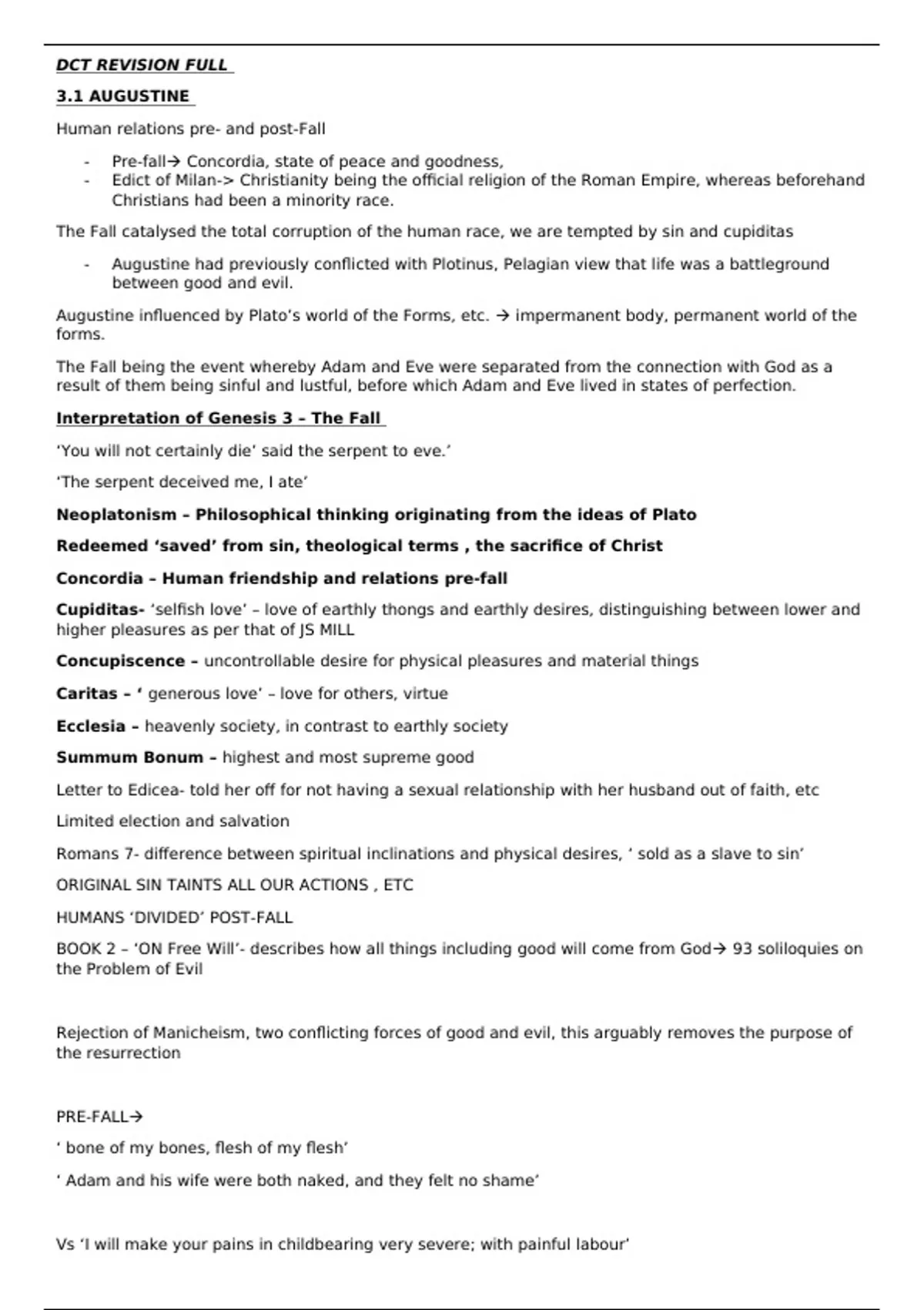 comprehensive notes for A Level Religious studies paper 3 Developments in Christian Thought