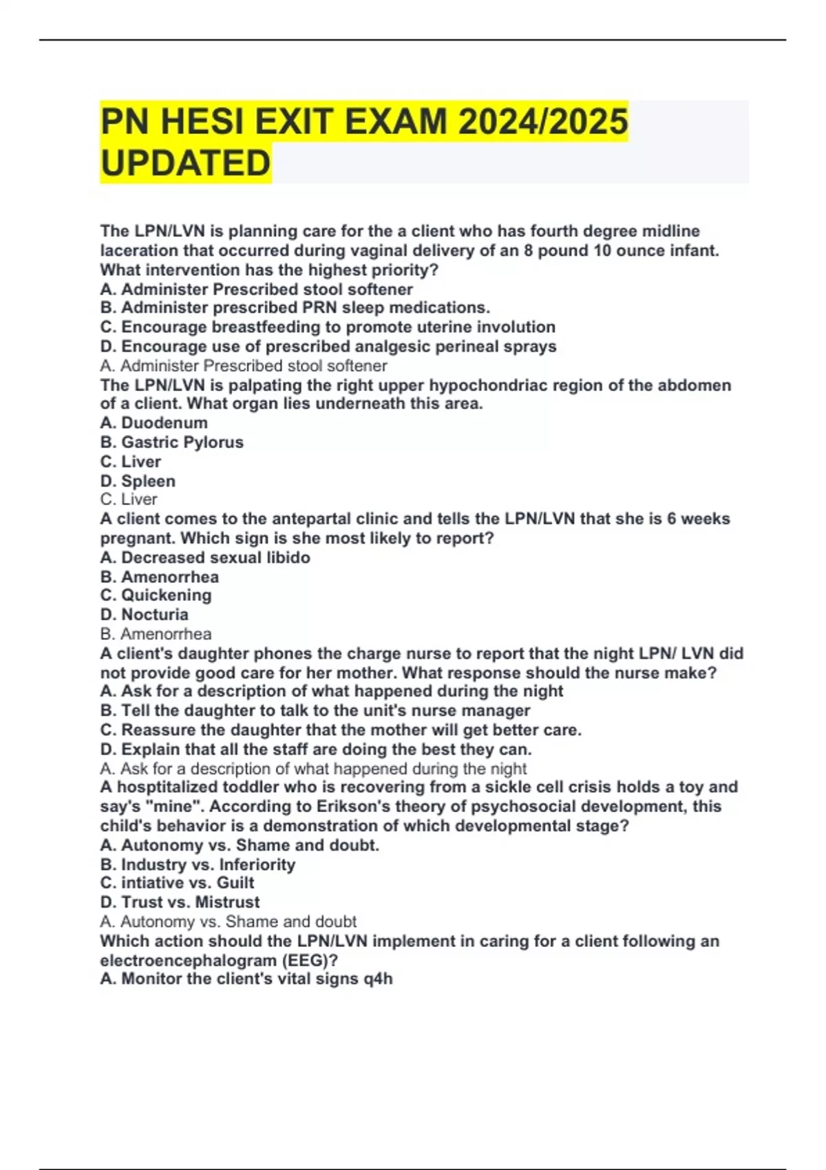 The LPN/LVN is palpating the right upper hypochondriac region of the abdomen