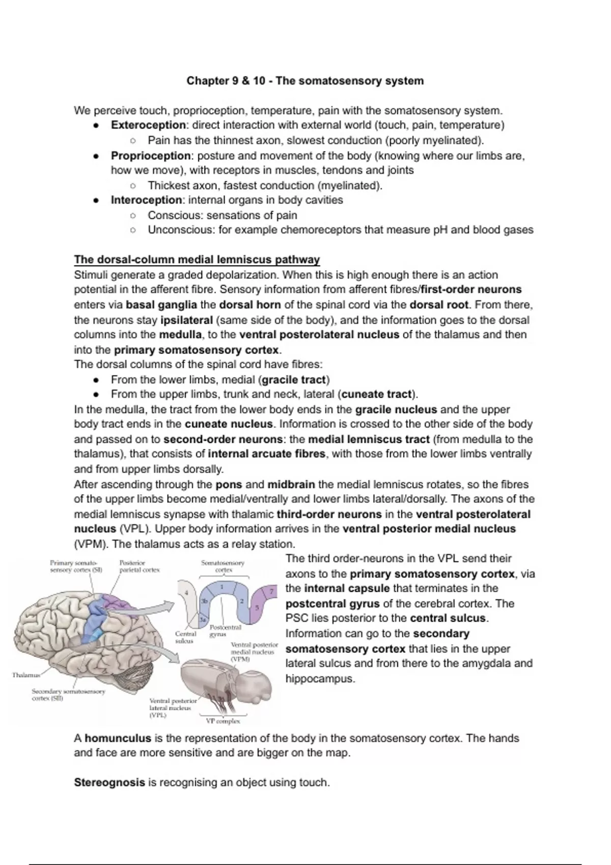 Chapter 9 & 10 - The somatosensory system