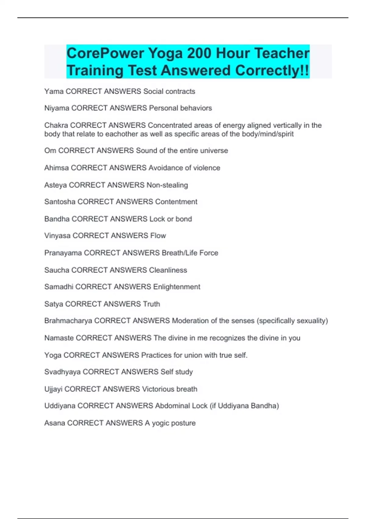 CorePower Yoga 200 Hour Teacher Training Test Answered Correctly!!