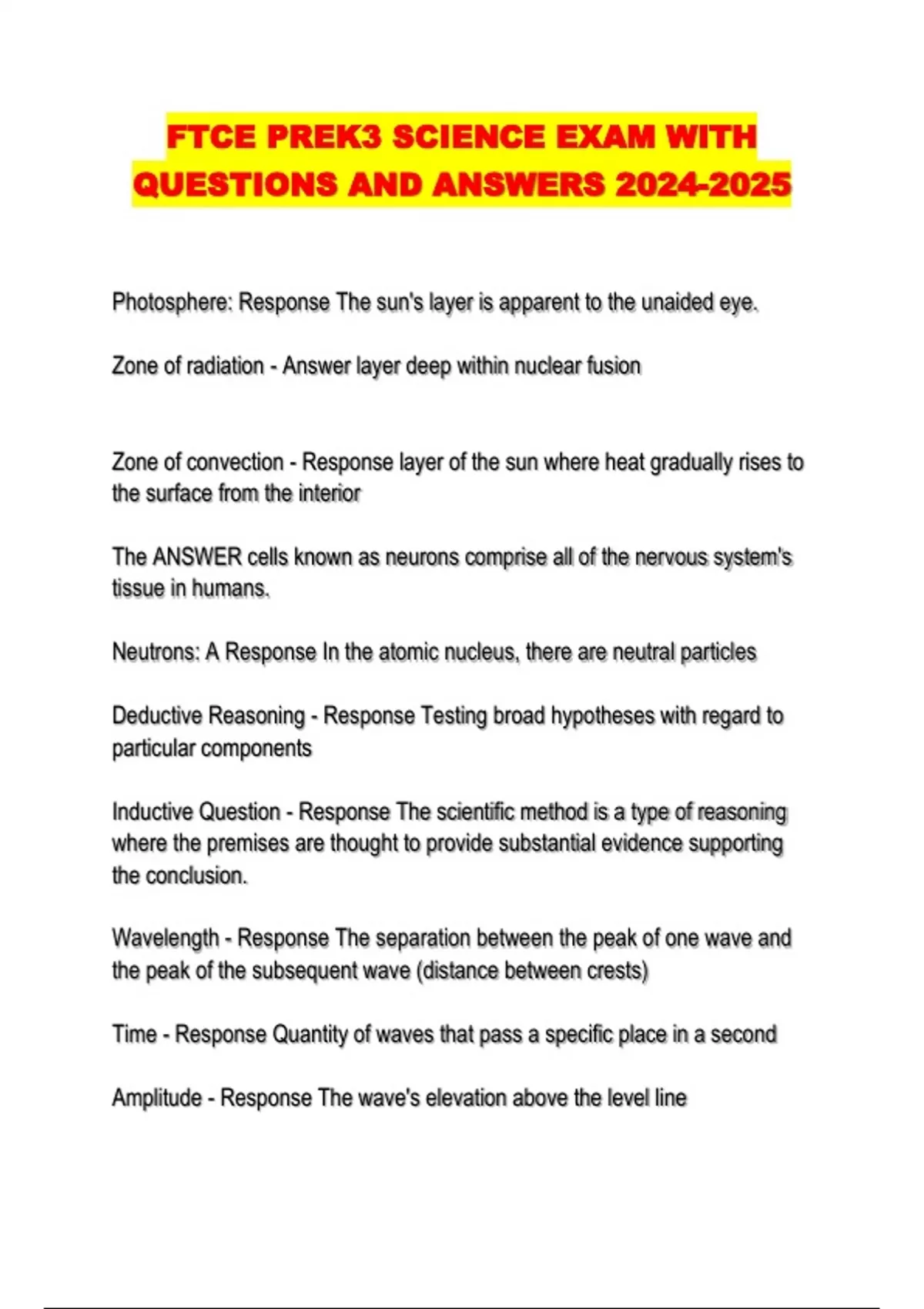 FTCE PREK3 SCIENCE EXAM WITH QUESTIONS AND ANSWERS ...