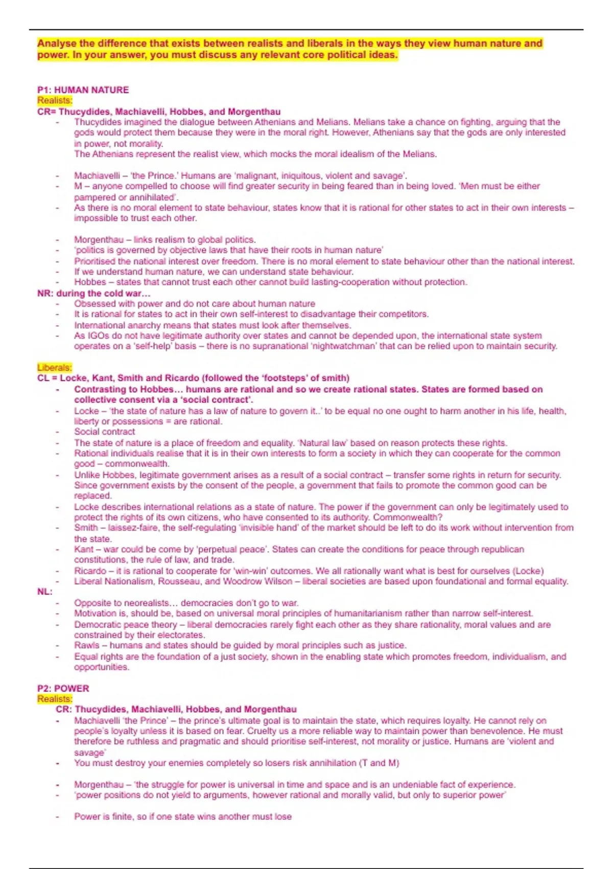 CR= Thucydides, Machiavelli, Hobbes, and Morgenthau