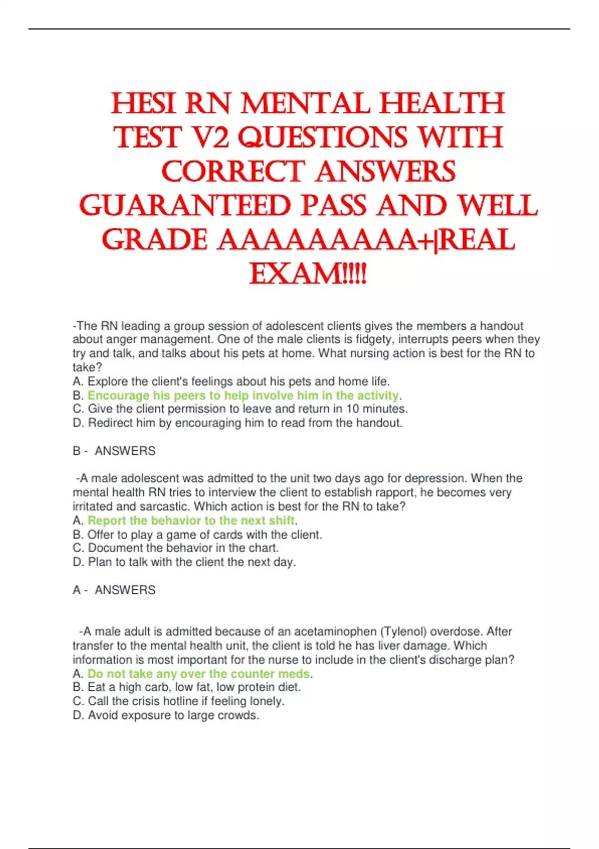 CORRECT ANSWERS