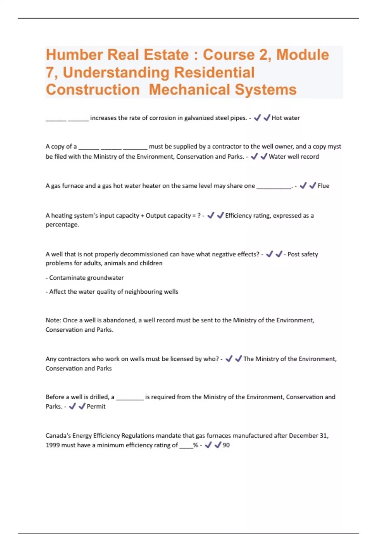 Humber Real Estate : Course 2, Module 7, Understanding Residential Construction Mechanical Systems Questions and Answers with complete solution