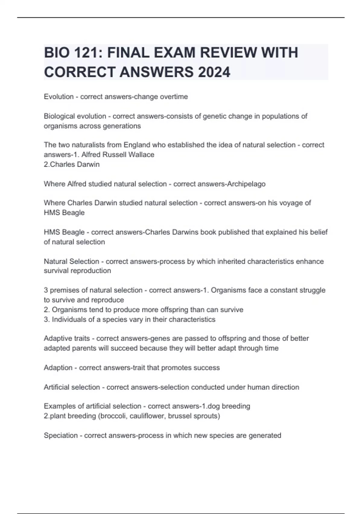 Evolution - correct answers-change overtime