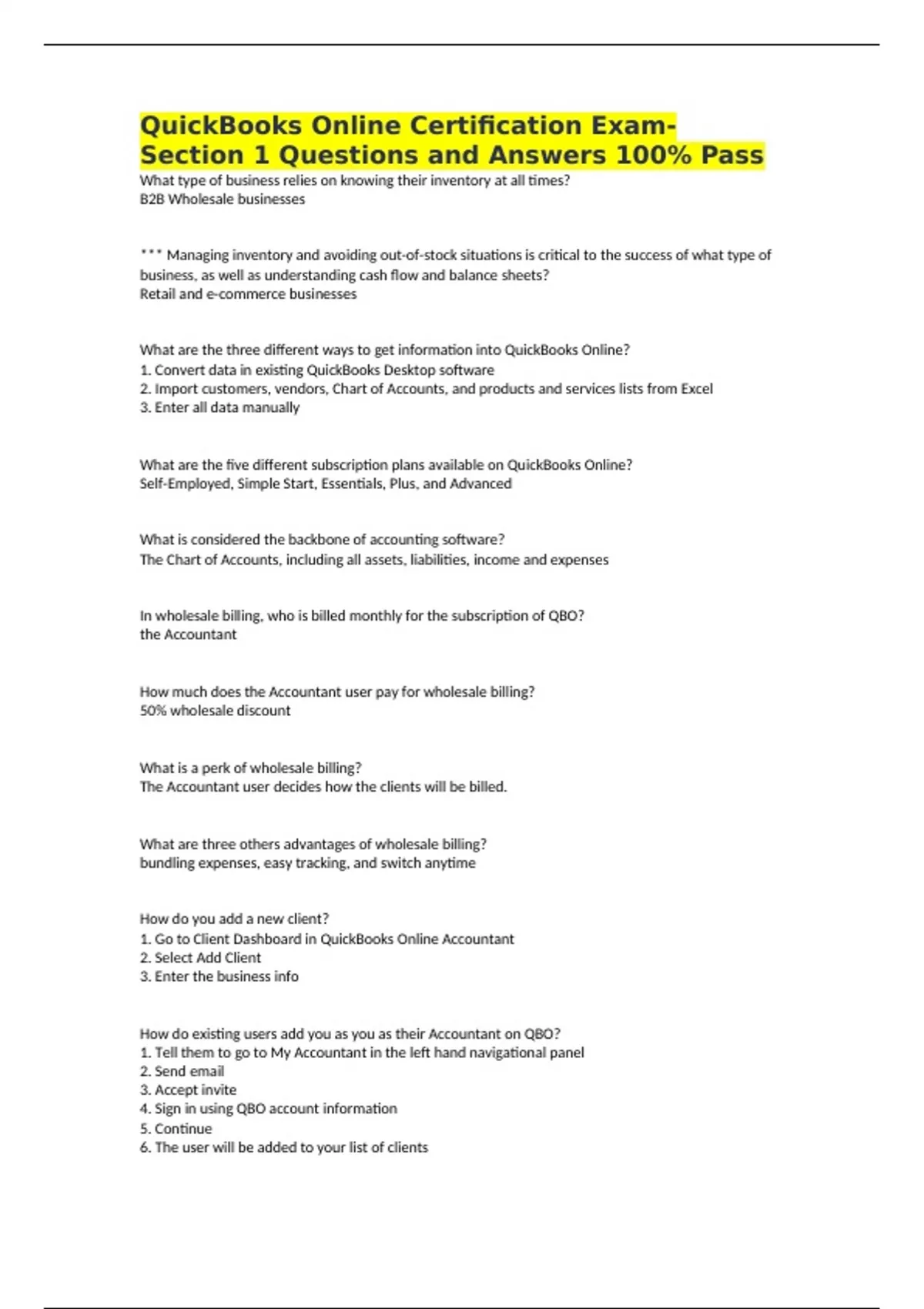 Section 1 Questions and Answers 100% Pass