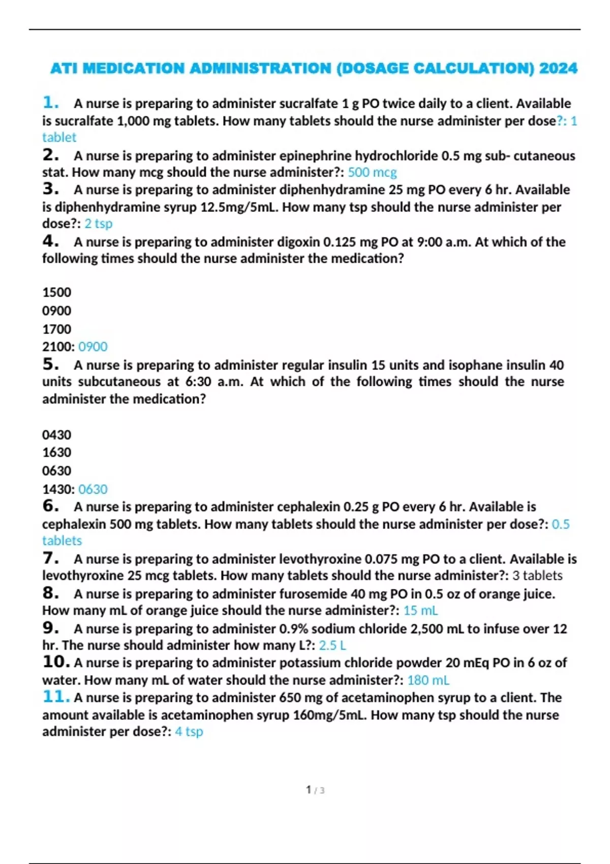 11. A nurse is preparing to administer 650 mg of acetaminophen syrup to a client. The