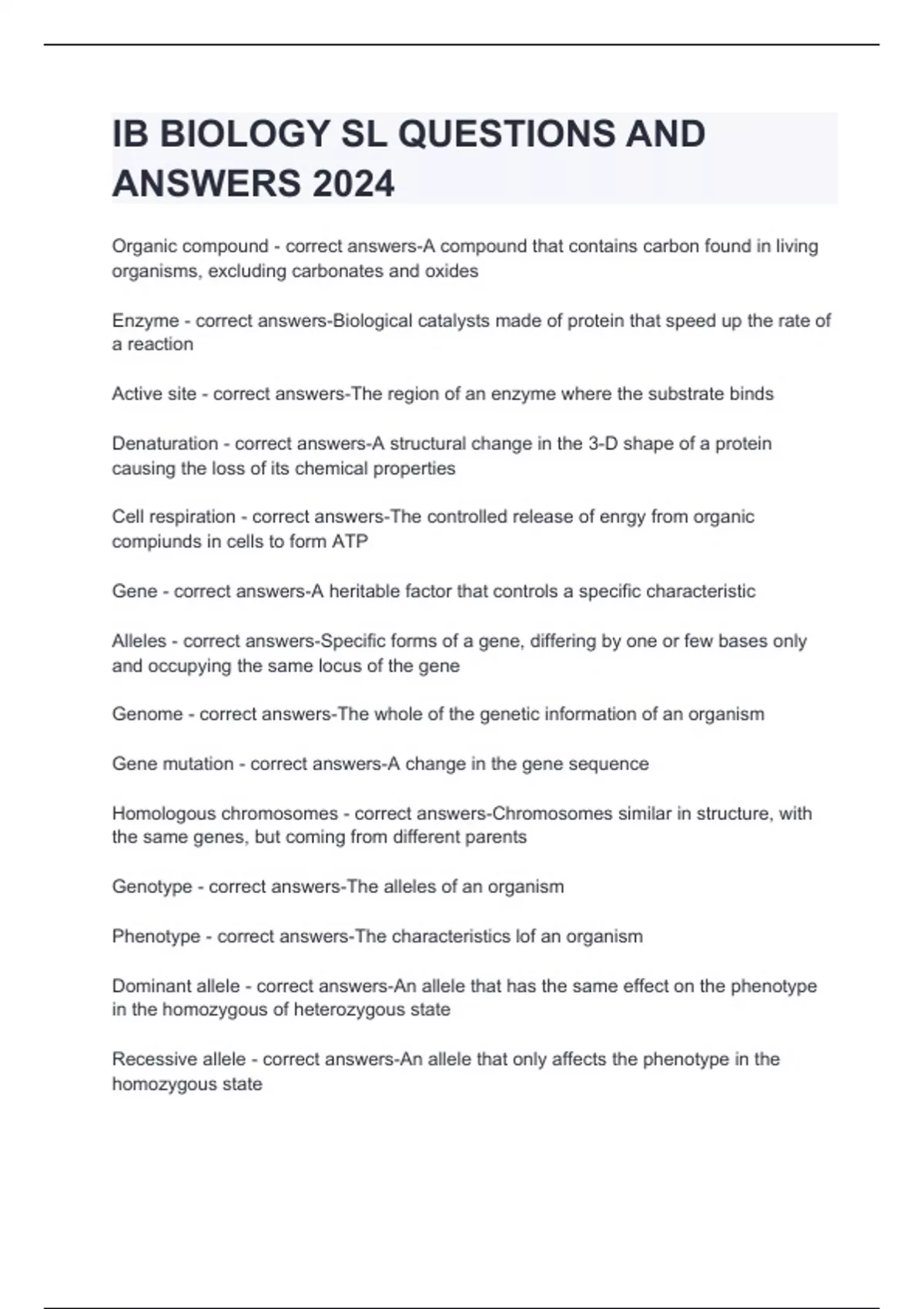 IB BIOLOGY SL QUESTIONS AND ANSWERS 2024