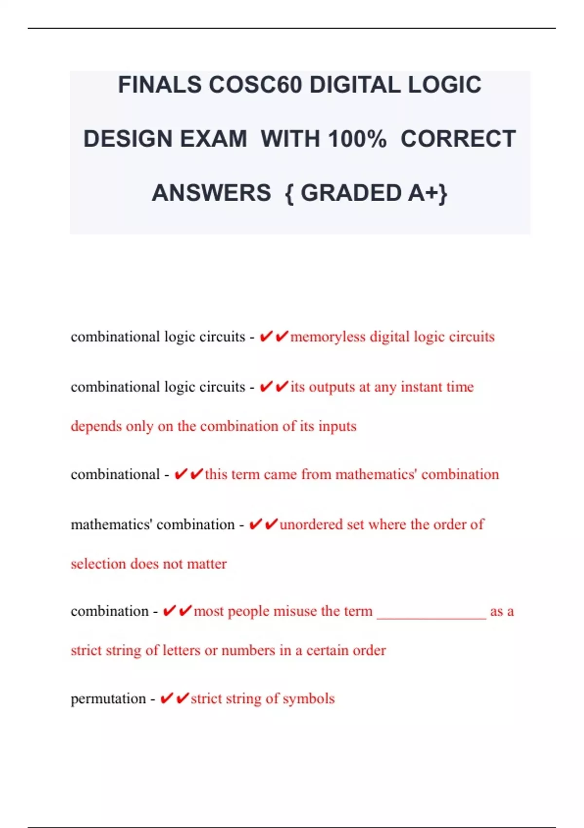 combinational logic circuits - ✔✔memoryless digital logic circuits