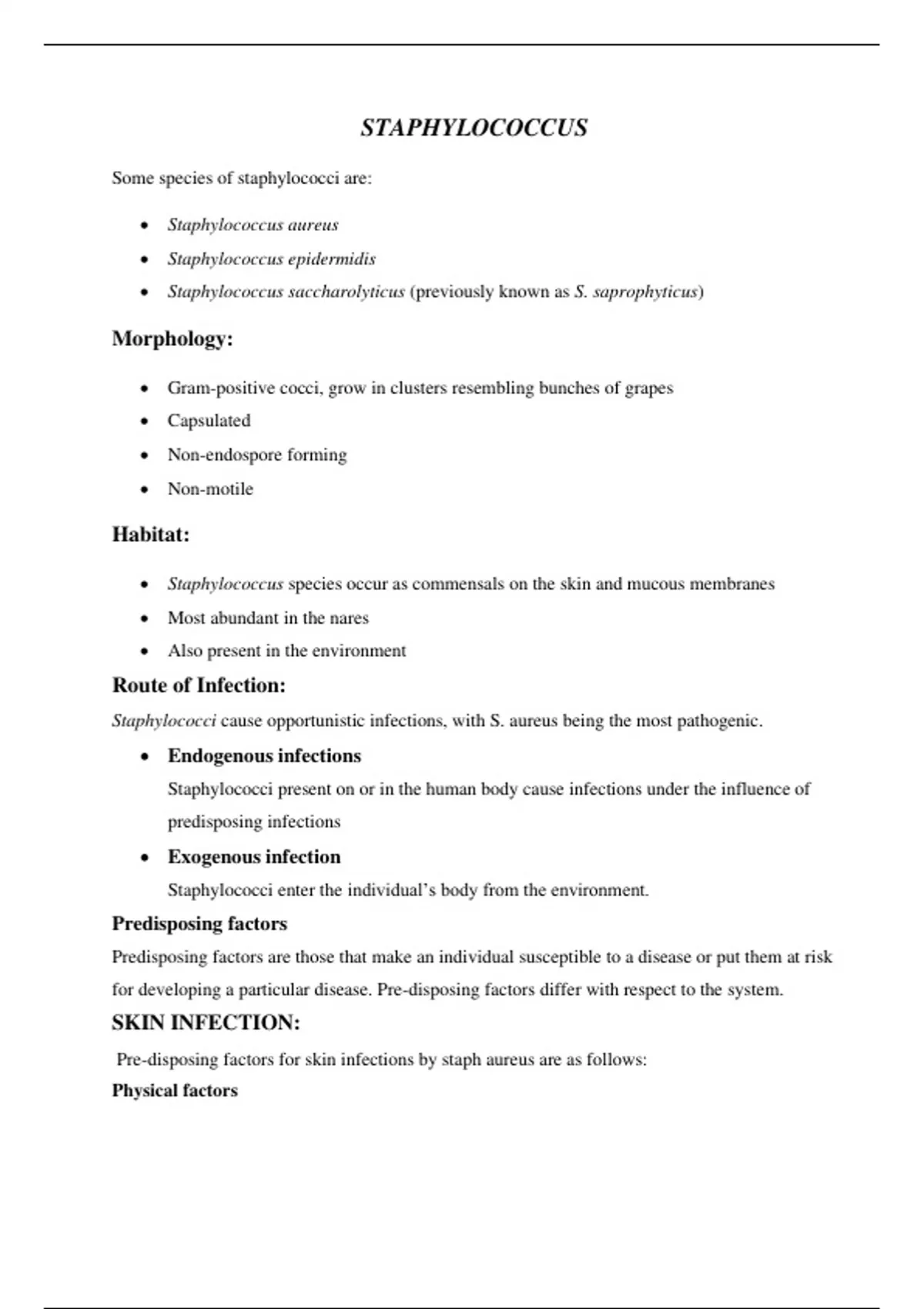 • Staphylococcus species occur as commensals on the skin and mucous membranes
