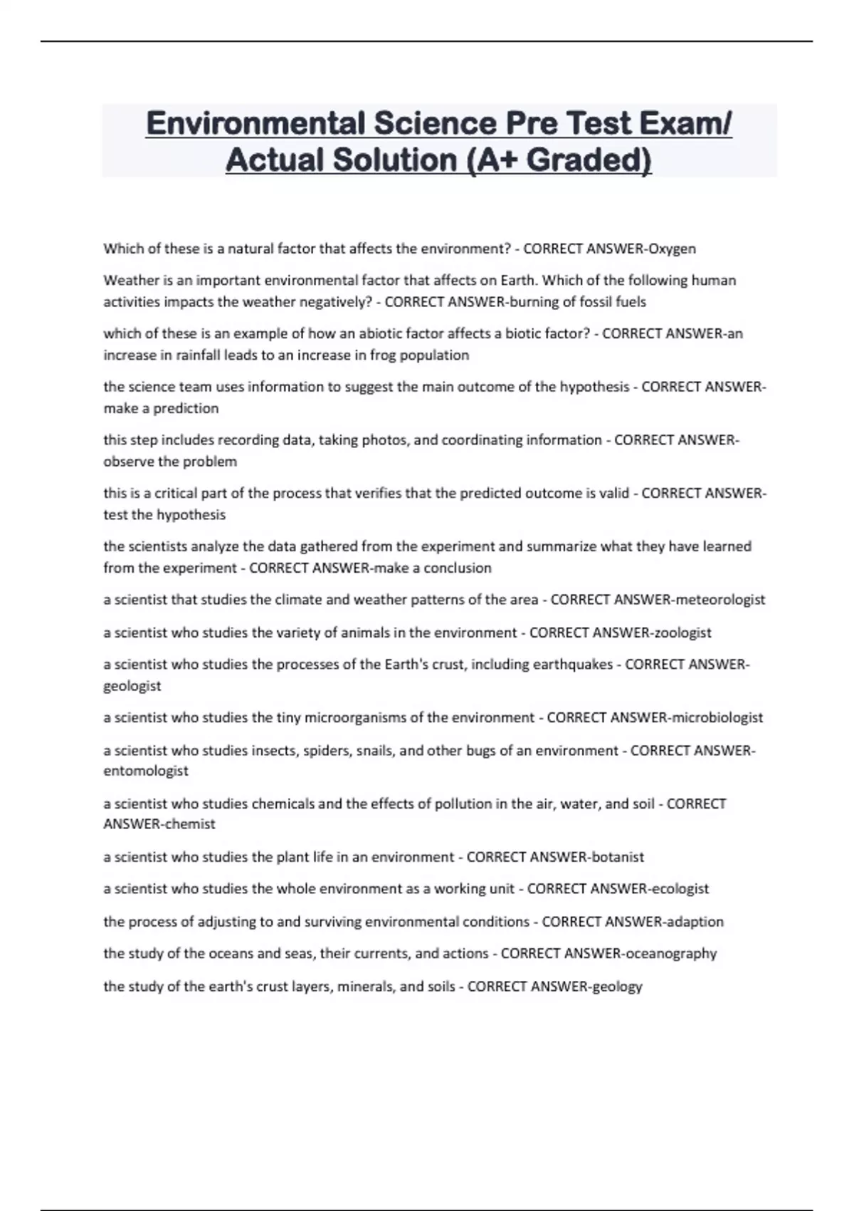 Environmental Science Pre Test Exam/ Actual Solution (A+ Graded)
