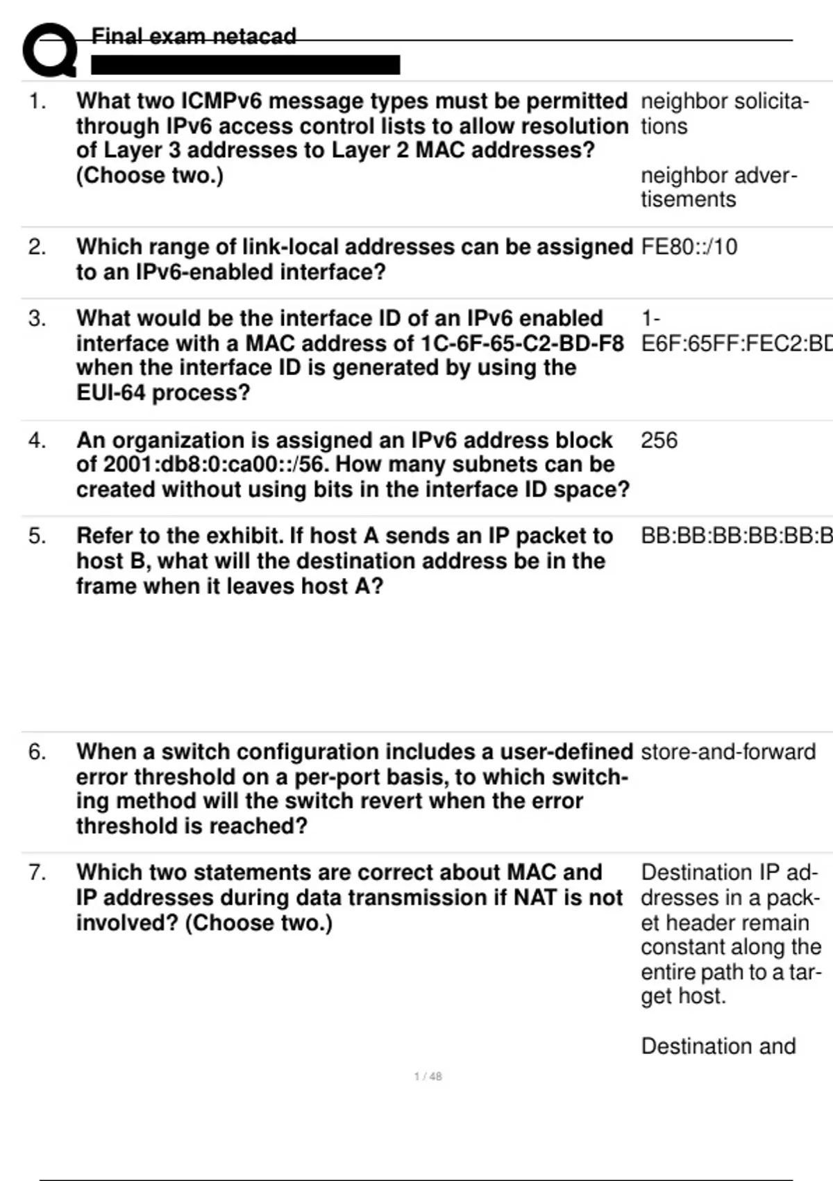 FINAL EXAM NETACAD (LATEST) QUESTIONS WITH 100% SOLVED SOLUTIONS!! -greatdoc