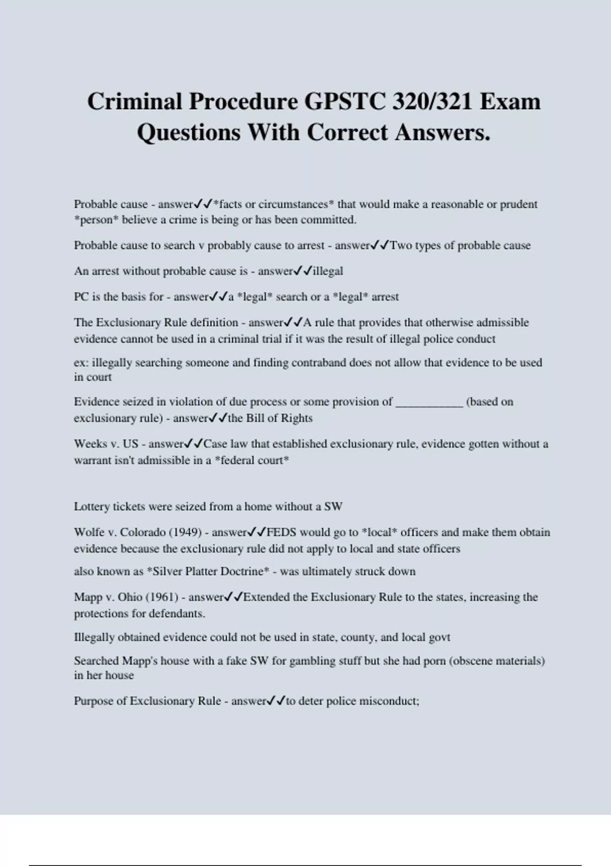 Criminal Procedure GPSTC 320/321 Exam Questions With Correct Answers.