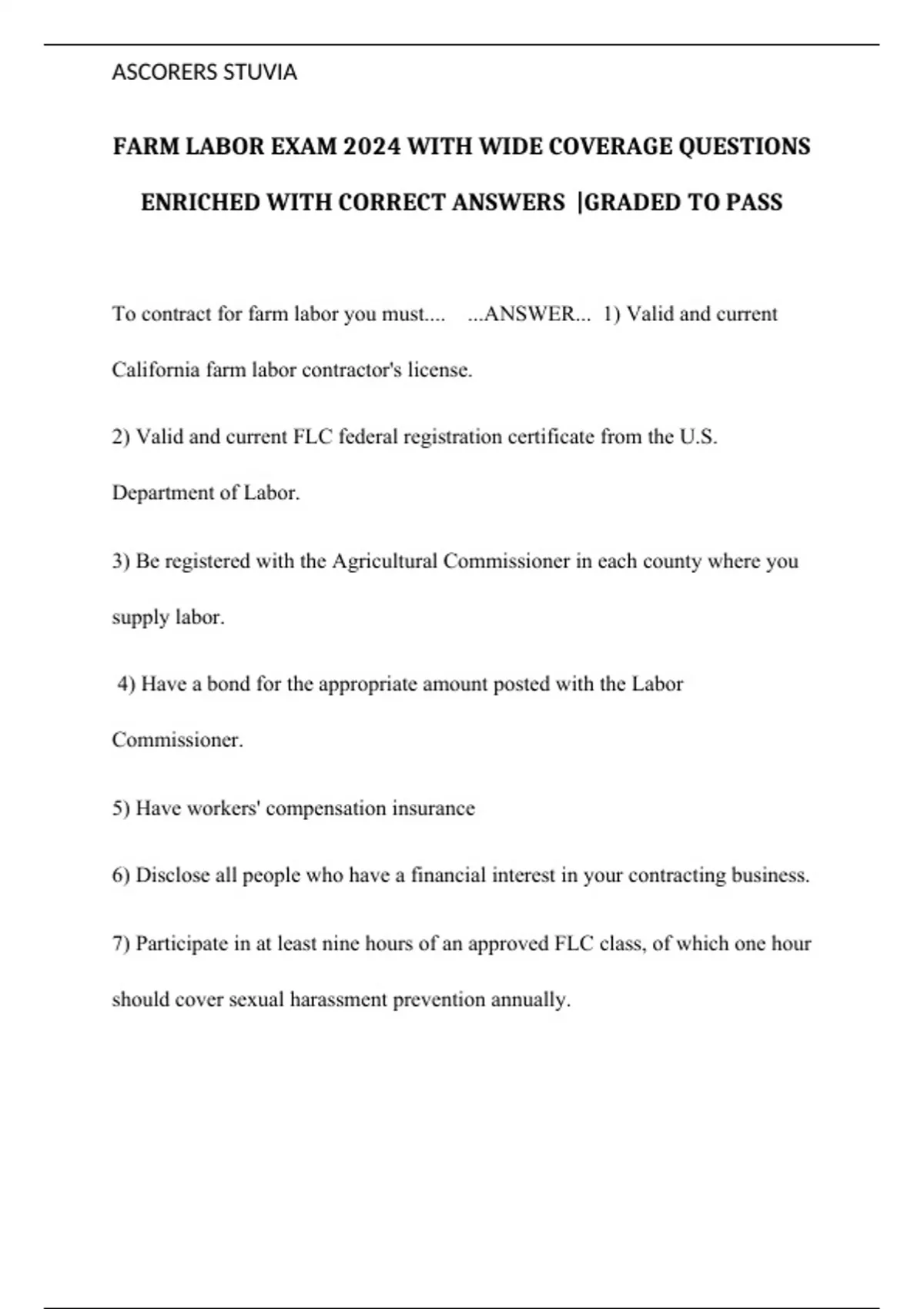 FARM LABOR EXAM 2024 WITH WIDE COVERAGE QUESTIONS ENRICHED WITH CORRECT ANSWERS |GRADED TO PASS