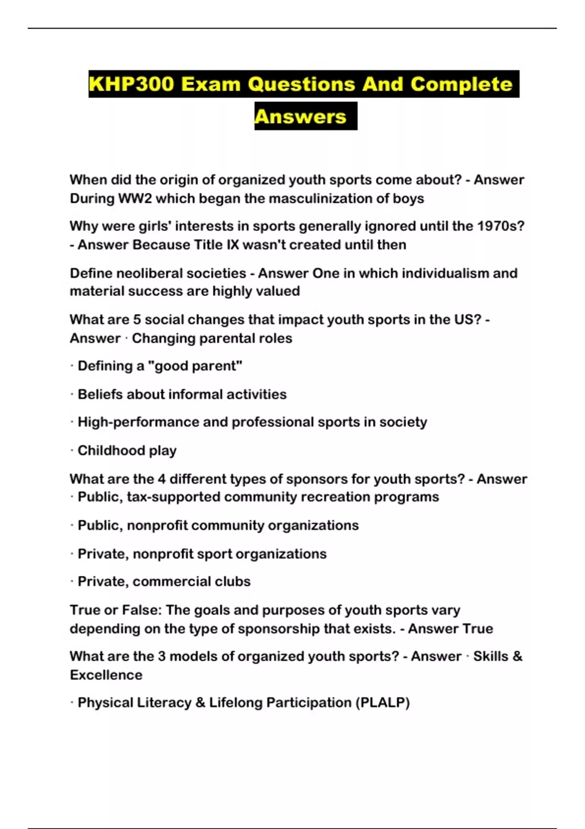 KHP300 Exam Questions And Complete Answers ...