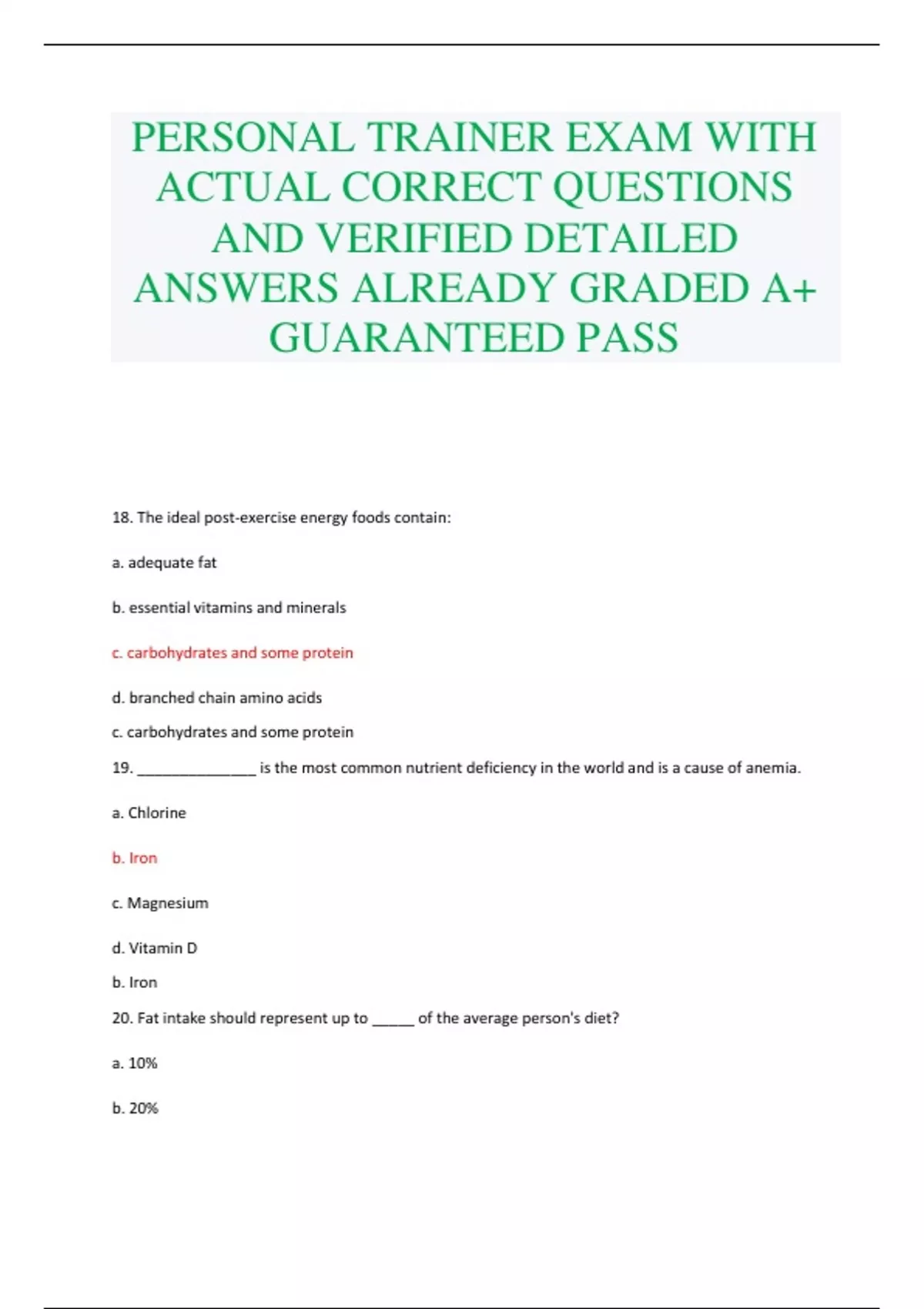 PERSONAL TRAINER EXAM WITH ACTUAL CORRECT QUESTIONS AND VERIFIED DETAILED ANSWERS ALREADY GRADED A+ GUARANTEED PASS