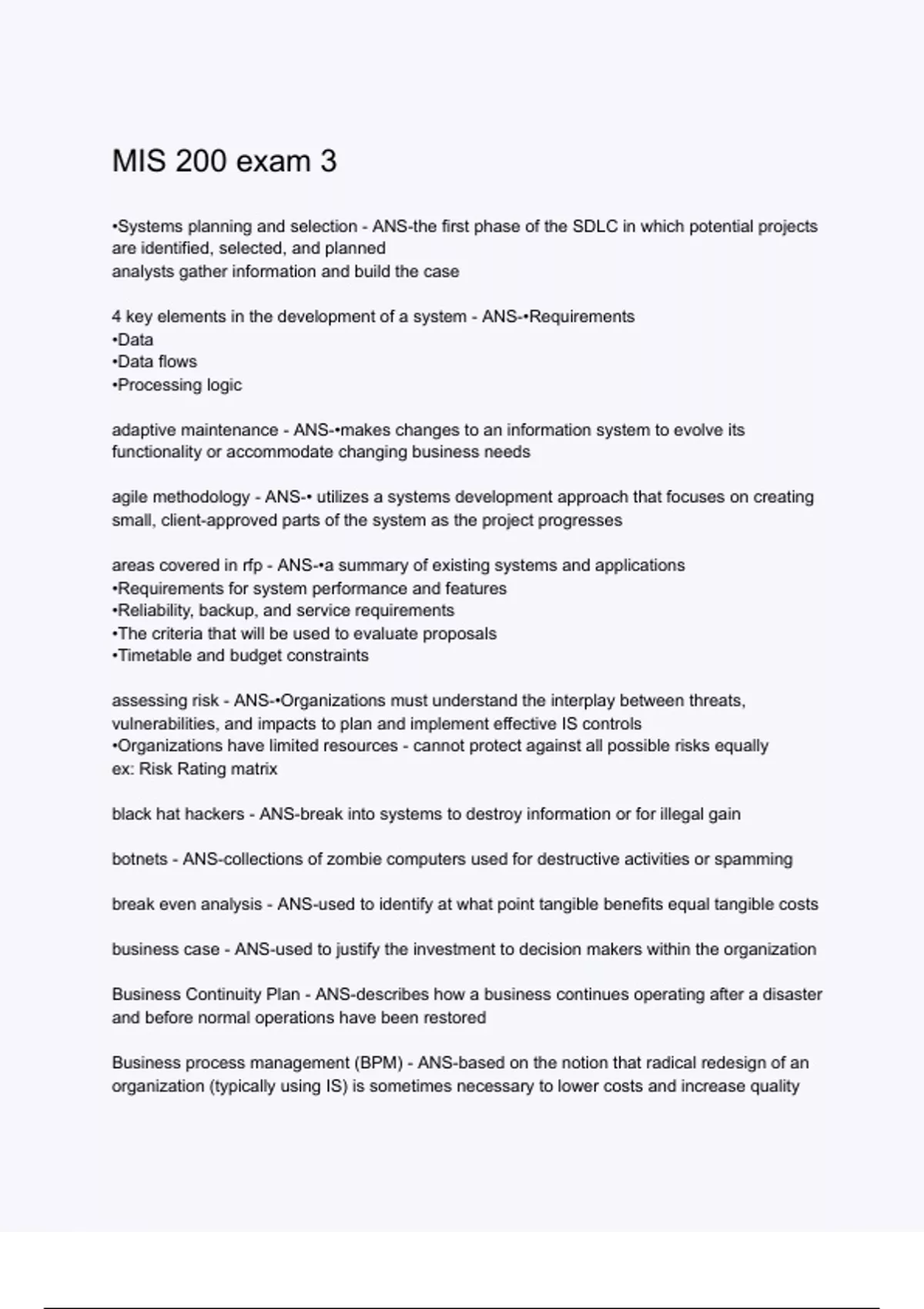 mis 200 exam 3 questions and correct answers alr