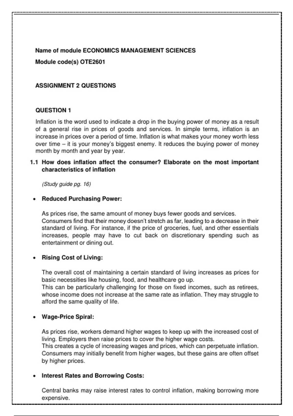 1.1 How does inflation affect the consumer? Elaborate on the most important