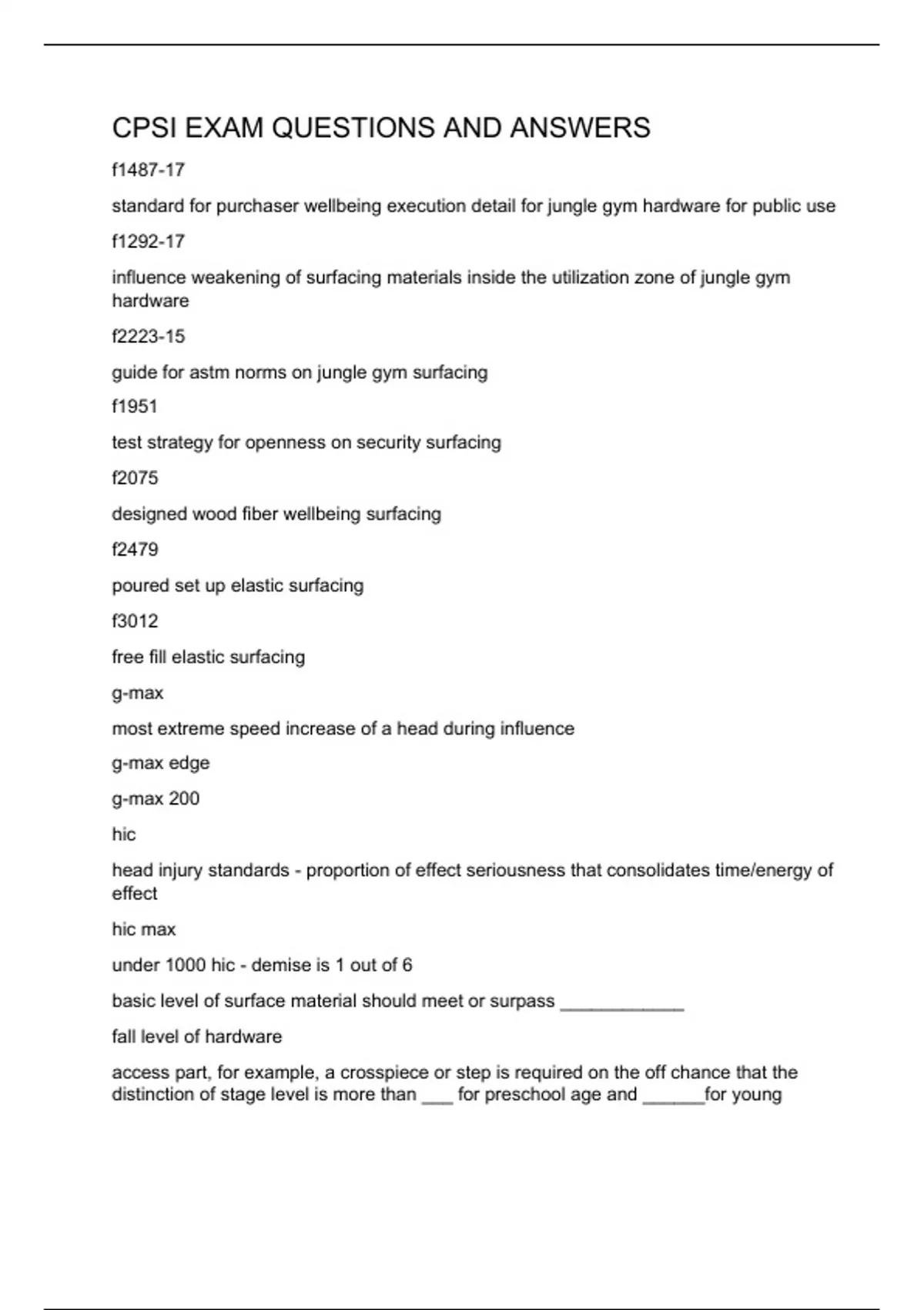 CPSI EXAM QUESTIONS AND ANSWERS