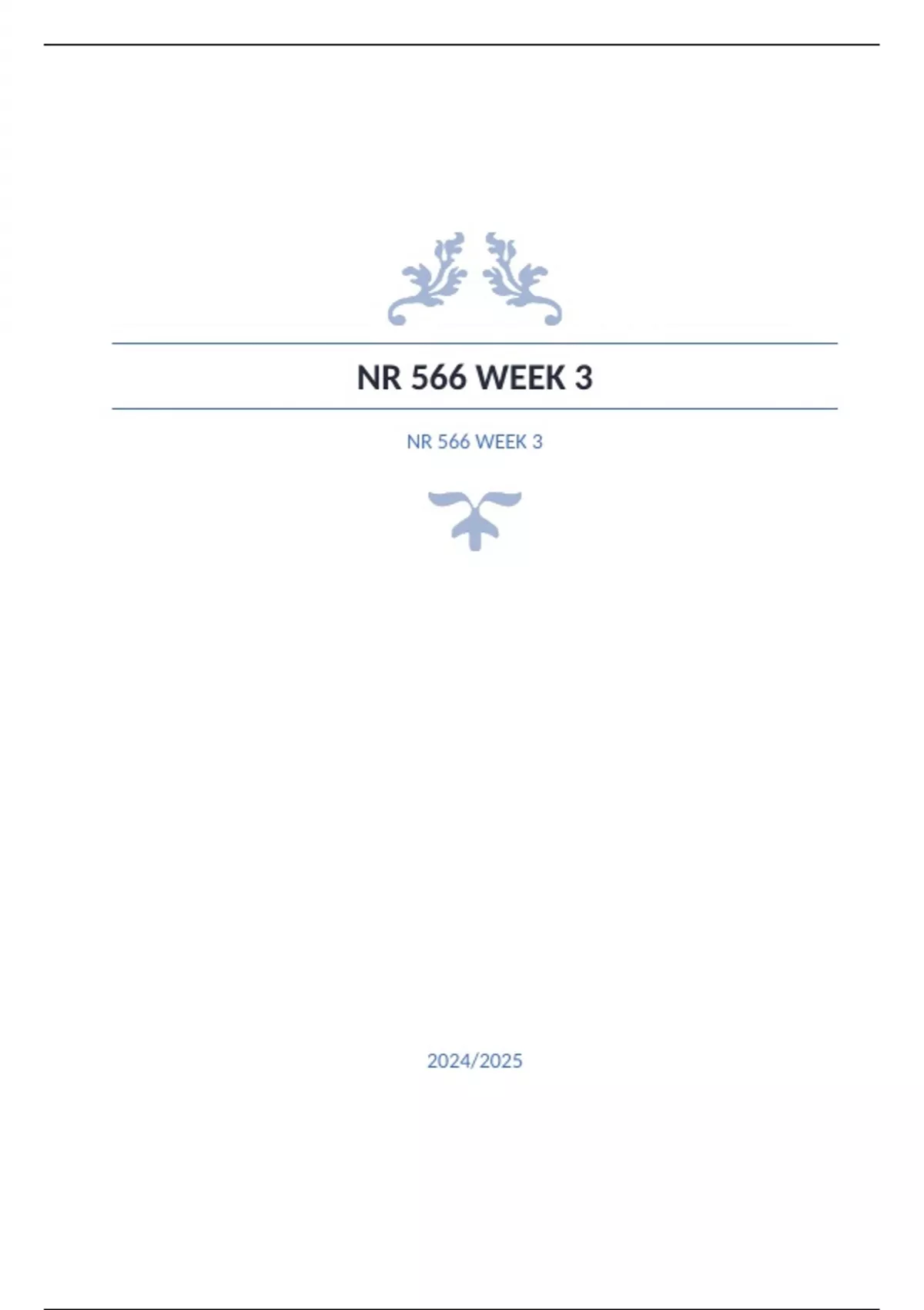 NR 566 WEEK 3 NR 566 Chamberlain College Nursing Questions with complete solution