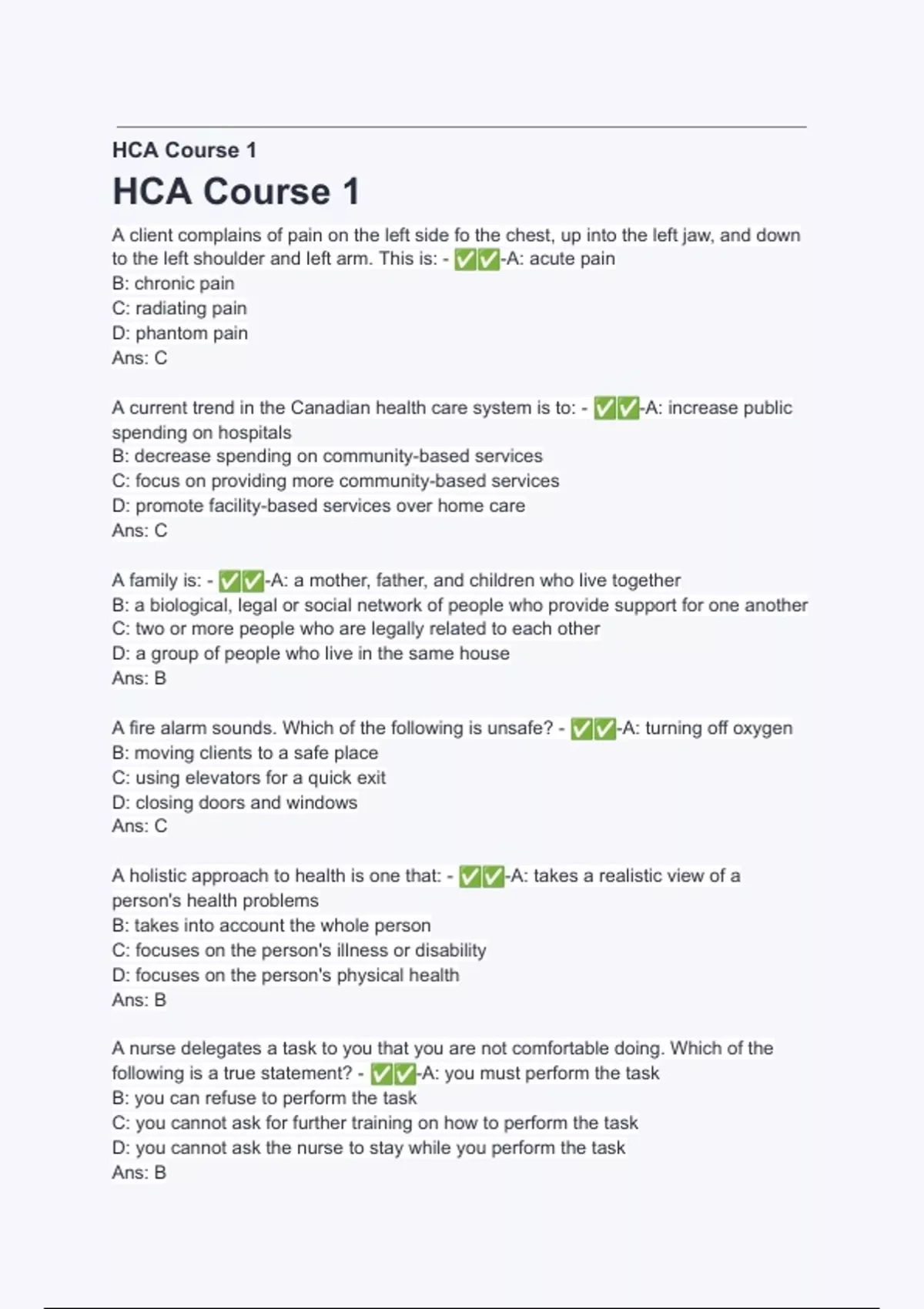 HCA Course 1 HCA Course 1 with verified correct answers - complete solution 2024