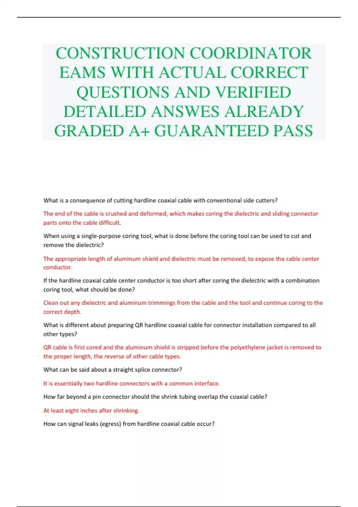 CONSTRUCTION COORDINATOR EAMS WITH ACTUAL CORRECT QUESTIONS AND VERIFIED DETAILED ANSWES ALREADY GRADED A+ GUARANTEED PASS