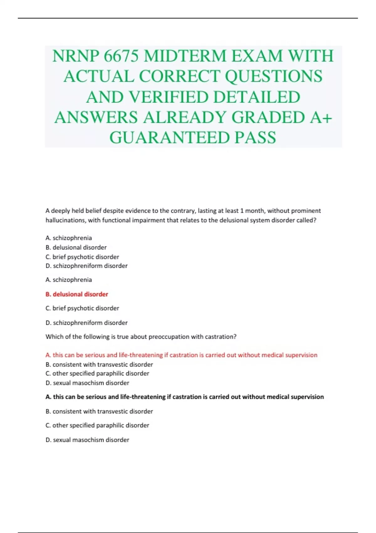 NRNP 6675 MIDTERM EXAM WITH ACTUAL CORRECT QUESTIONS AND VERIFIED DETAILED ANSWERS ALREADY GRADED A+ GUARANTEED PASS