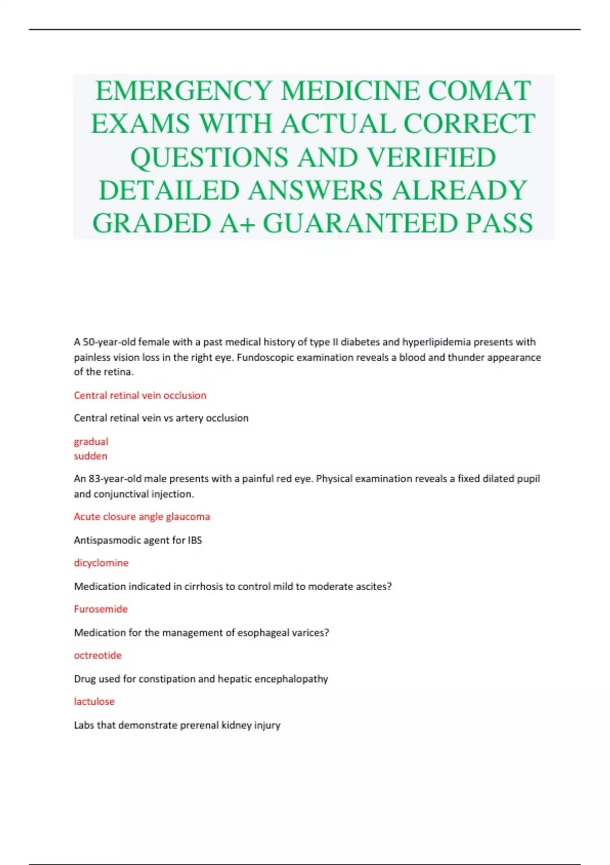 EMERGENCY MEDICINE COMAT EXAMS WITH ACTUAL CORRECT QUESTIONS AND VERIFIED DETAILED ANSWERS ALREADY GRADED A+ GUARANTEED PASS